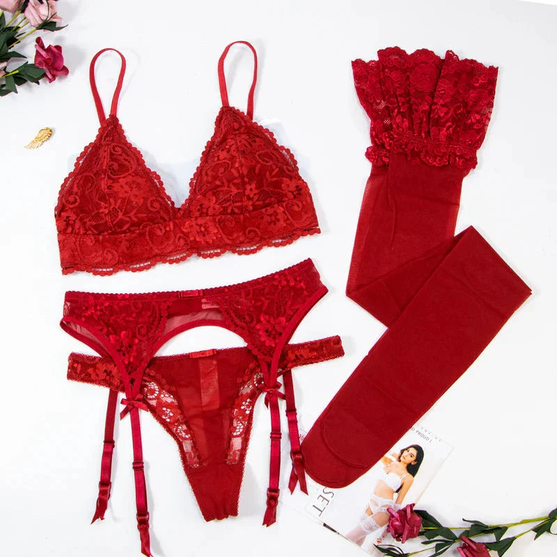 3dílná smyslná krajková spodní souprava s podvazkovým pásem