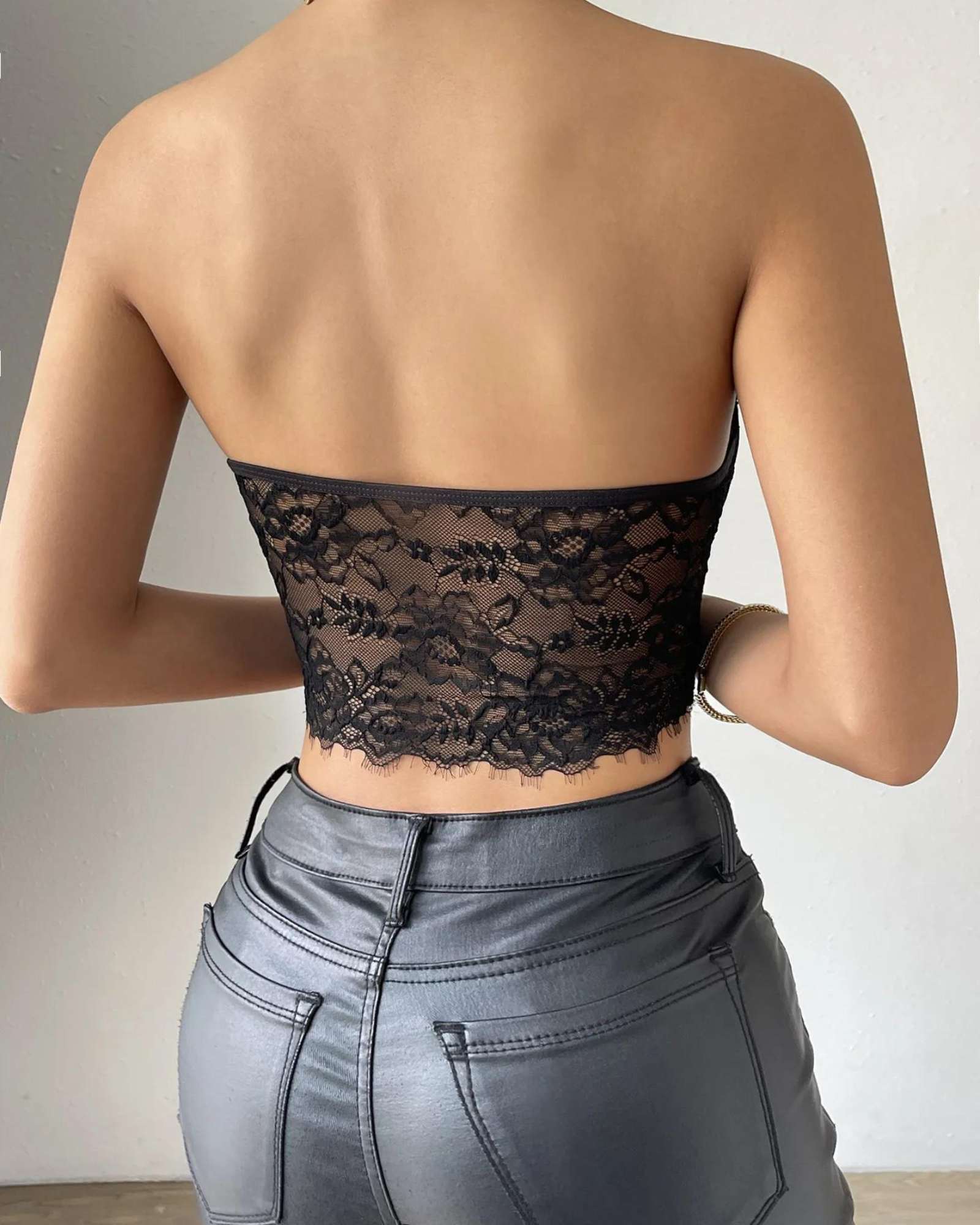 • Průhledná záda z elastické krajky