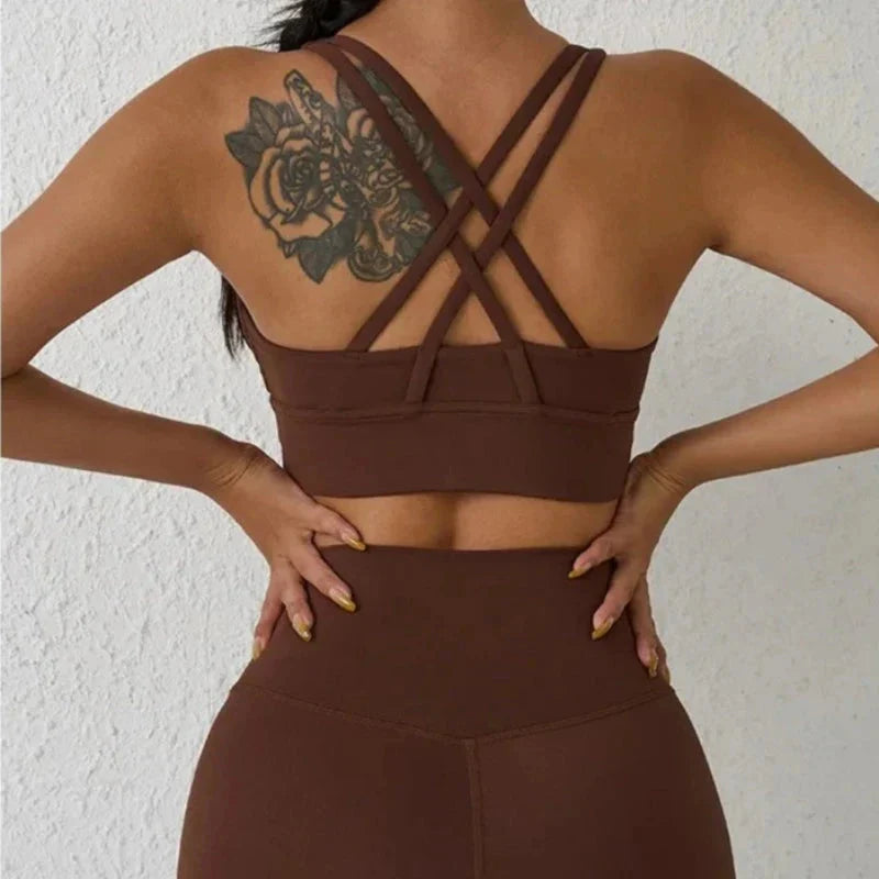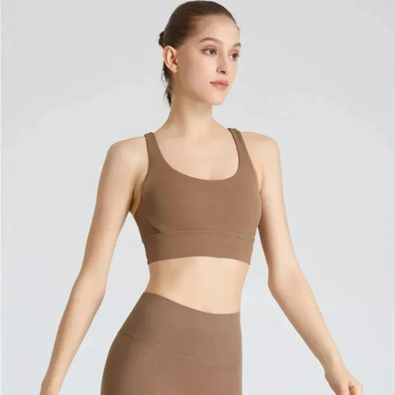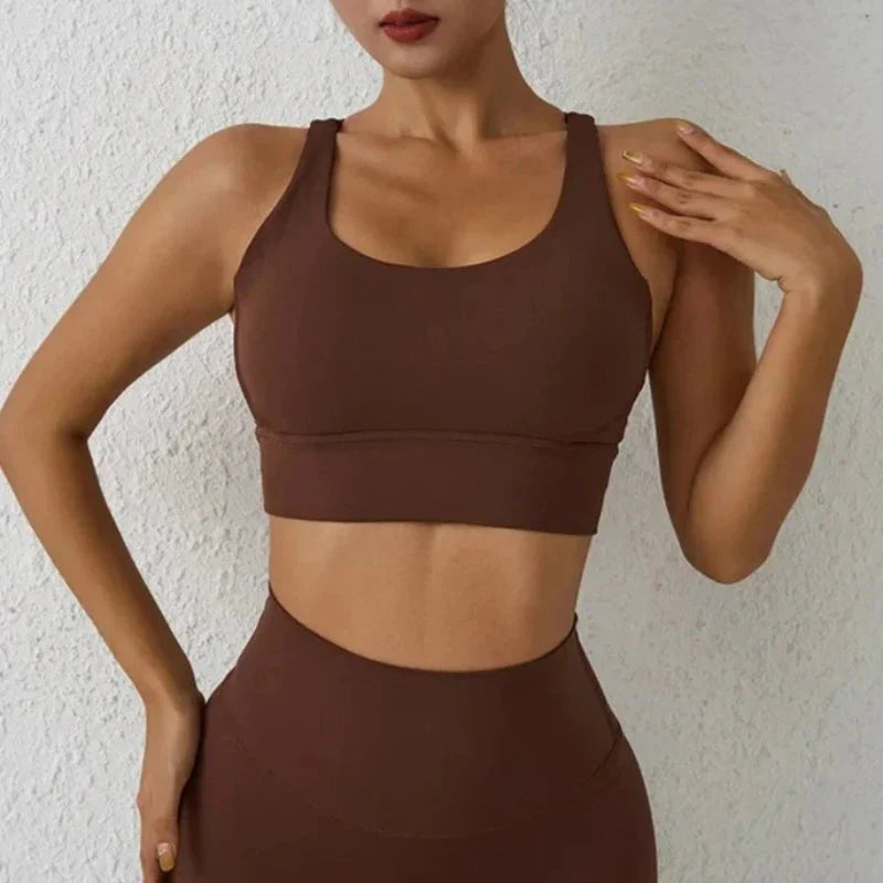 Představujeme sportovní podprsenku v bohaté barevné paletě, která zahrnuje tmavě hnědou, bílou, hnědou, černou a tmavě modrou, a je ideální jak pro fyzickou aktivitu, tak pro každodenní nošení. Díky kulatému výstřihu a ozdobným ramínkům vzadu poskytuje tato podprsenka nejen oporu, ale také stylový vzhled, díky kterému se budete cítit sebejistě při jakékoli aktivitě.