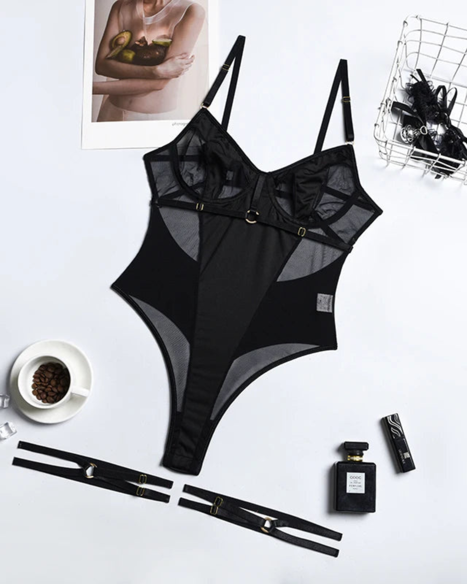 Přeneste se do světa svádění s body Harmoni. Tento jedinečný model spodního prádla kombinuje moderní styl s jemným, smyslným provedením. Průsvitné panely decentně odhalují pokožku a zdůrazňují přirozenou krásu vaší postavy.