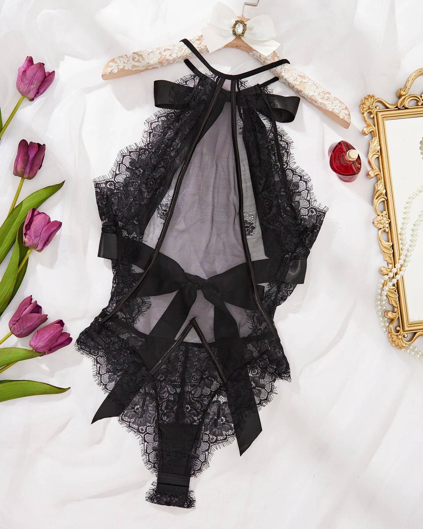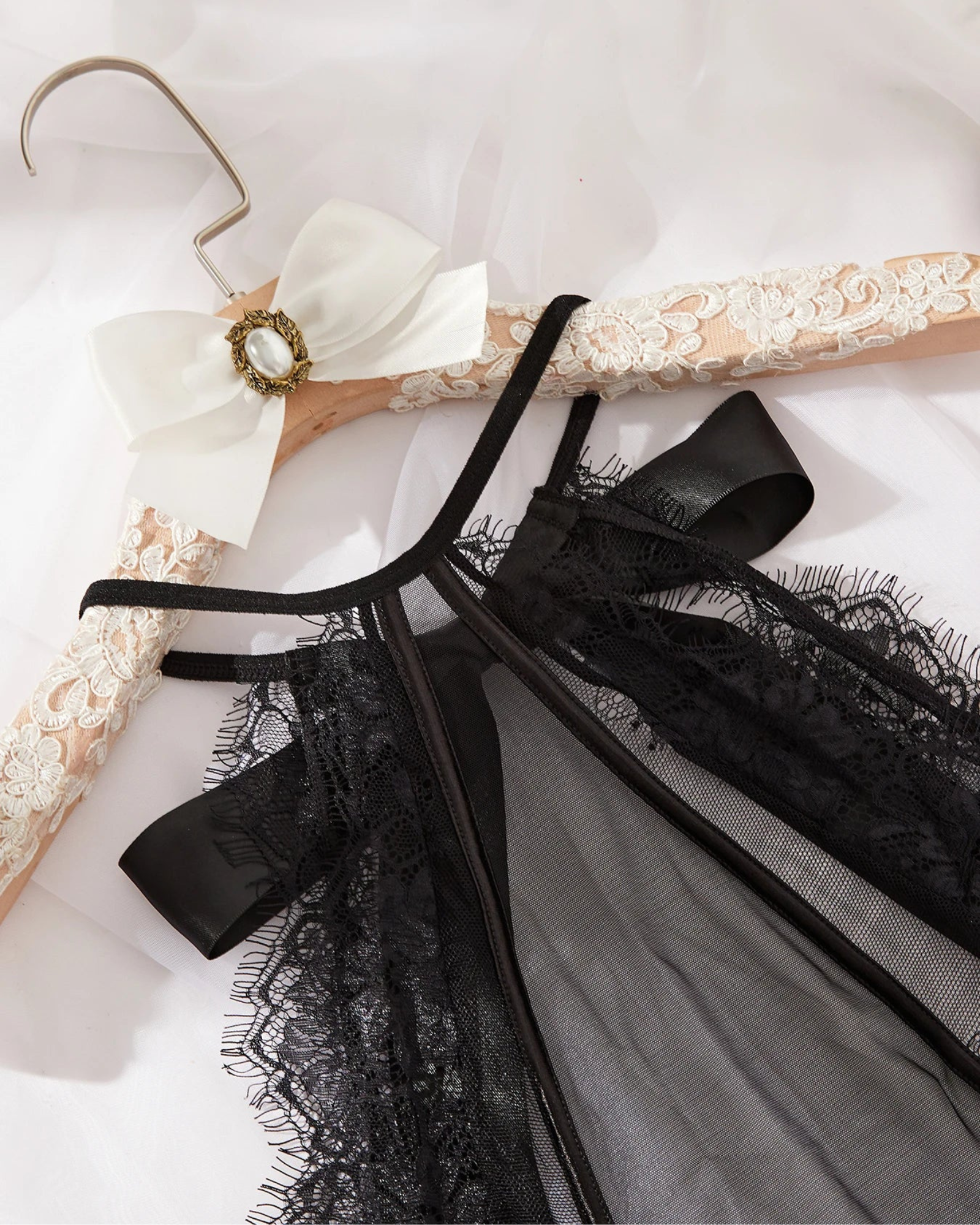 Objevte skutečnou smyslnost s tímto jedinečným designem. Kombinace krajkových detailů a průsvitného materiálu svádí a neuvěřitelně elegantním způsobem zdůrazňuje vaše aduty.
