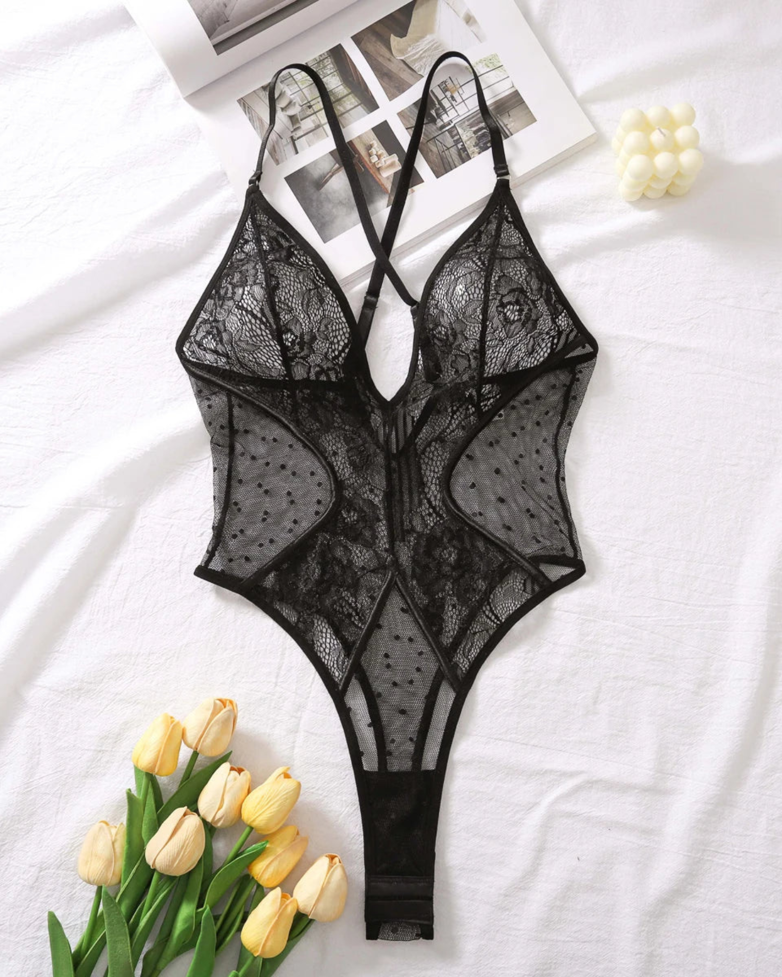 Připravte se objevit eleganci a smyslnost s tímto jedinečným kouskem. Jeho promyšlený design zdůrazní vaše nejlepší přednosti, zatímco lehký a průsvitný materiál v kombinaci s krajkovými detaily zajišťuje perfektní střih a pohodlí.