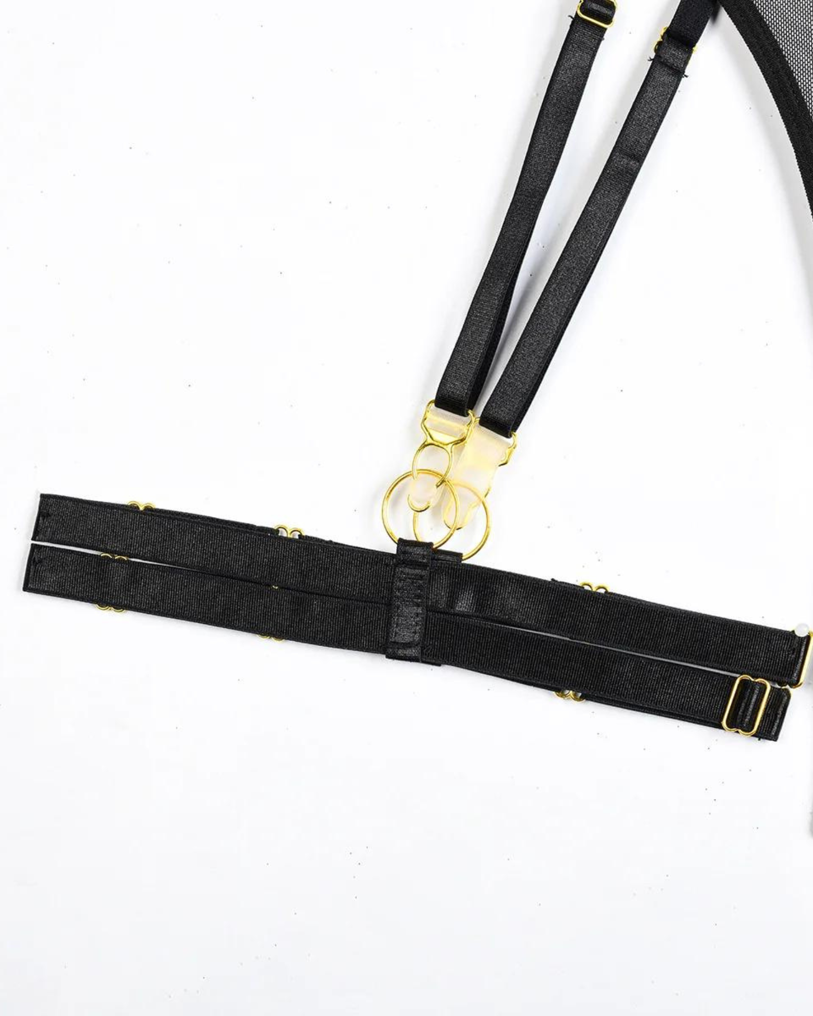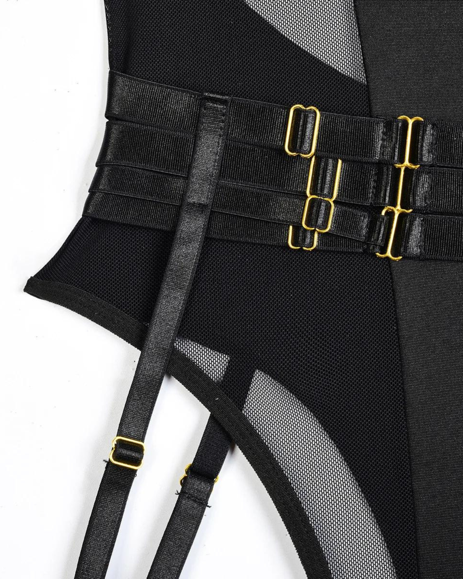 Kovové spony dodávají výrazný akcent a svůdným způsobem zdůrazňují vaše přednosti. Smyslné stehenní pásky dodávají špetku pikantnosti a zdůrazňují vaše křivky. Každý detail byl navržen s ohledem na vaše pohodlí a luxus.