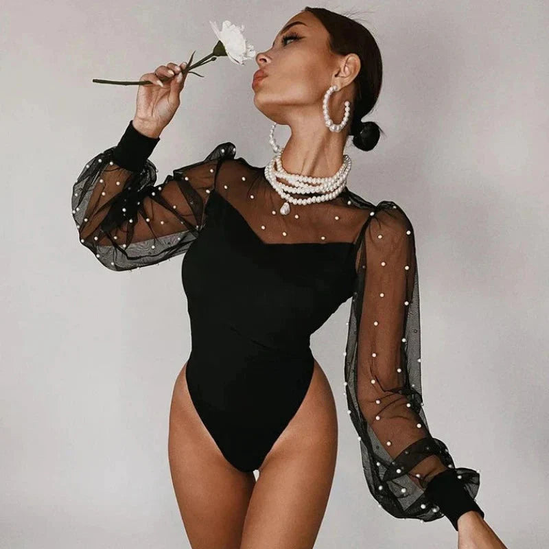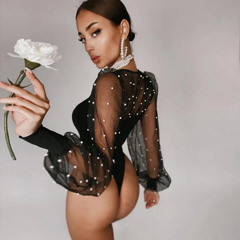 Elegance a styl se snoubí v našem mimořádném body s dlouhým rukávem a perlami. Toto elegantní černé body je ideální pro různé příležitosti, od večírku přes romantické rande až po každodenní nošení. Kulatý výstřih dodává body nádech jemnosti, zatímco dlouhé rukávy vytvářejí elegantní vzhled, ideální pro chladnější dny.
