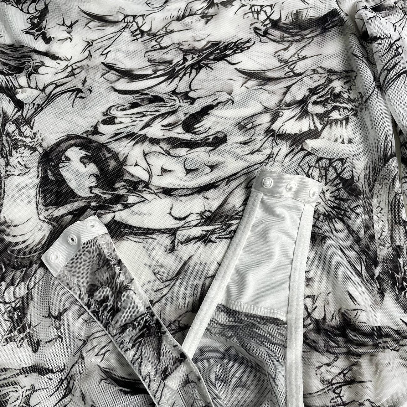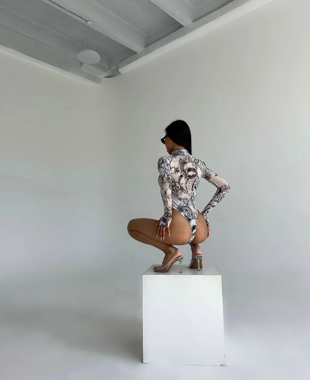 Průsvitný materiál a dlouhé rukávy dělají z tohoto body perfektní volbu pro různé příležitosti, od každodenního nošení až po večerní vycházky. Otvory pro palce a zapínání na druk v rozkroku mu dodávají moderní nádech a zároveň zajišťují pohodlí.