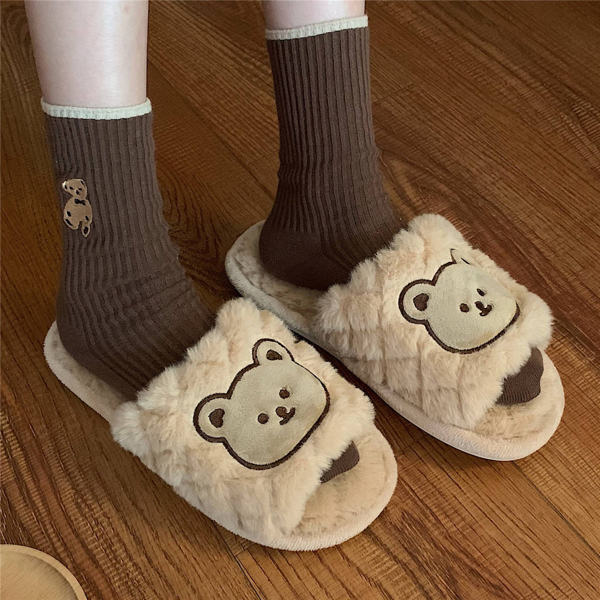 Tyto nadýchané pantofle, dostupné v měkké bílé a hnědé barvě, jsou perfektní volbou pro každý den. Poskytují nejen hebkost a teplo, ale také rozkošný motiv medvídka. Díky designu s otevřenou špičkou jsou neuvěřitelně pohodlné a praktické a měkká textura zahalí vaše nohy do pohodlí. Tyto pantofle se dají nazouvat a jsou ideální pro relaxaci doma, dodají vašim relaxačním chvílím kouzlo.