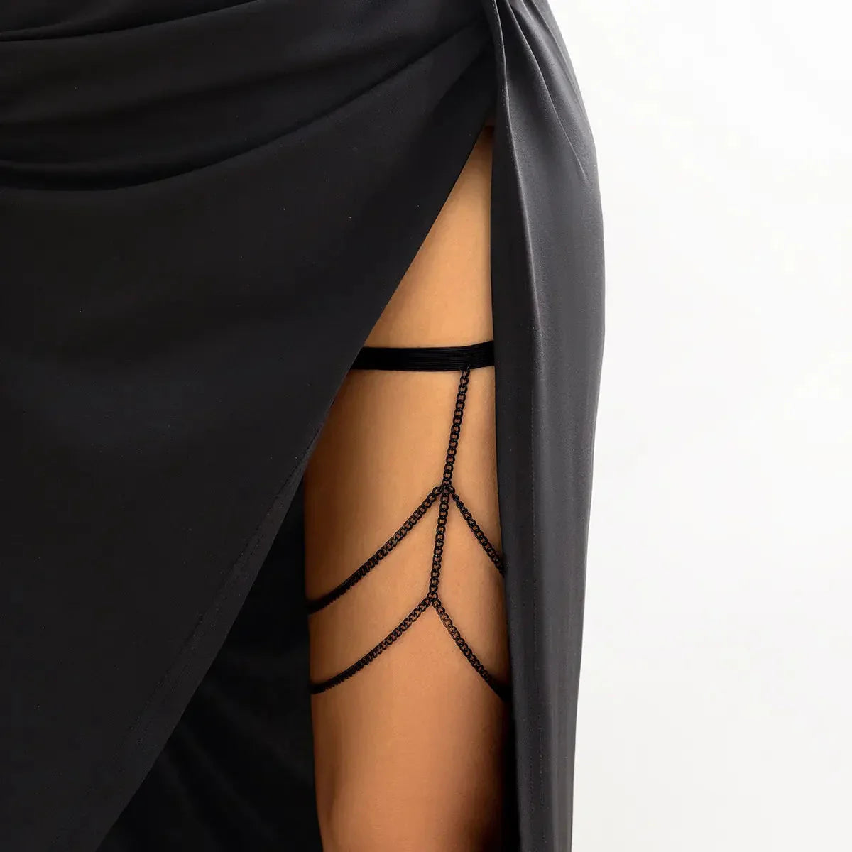 Dopřejte si nádech elegance s našimi černými šperky na stehna s jemnými řetízky. Tento doplněk je ideální pro různé příležitosti, od večírku přes romantické rande až po relaxaci na pláži, a dodá každé události jemnost a styl.