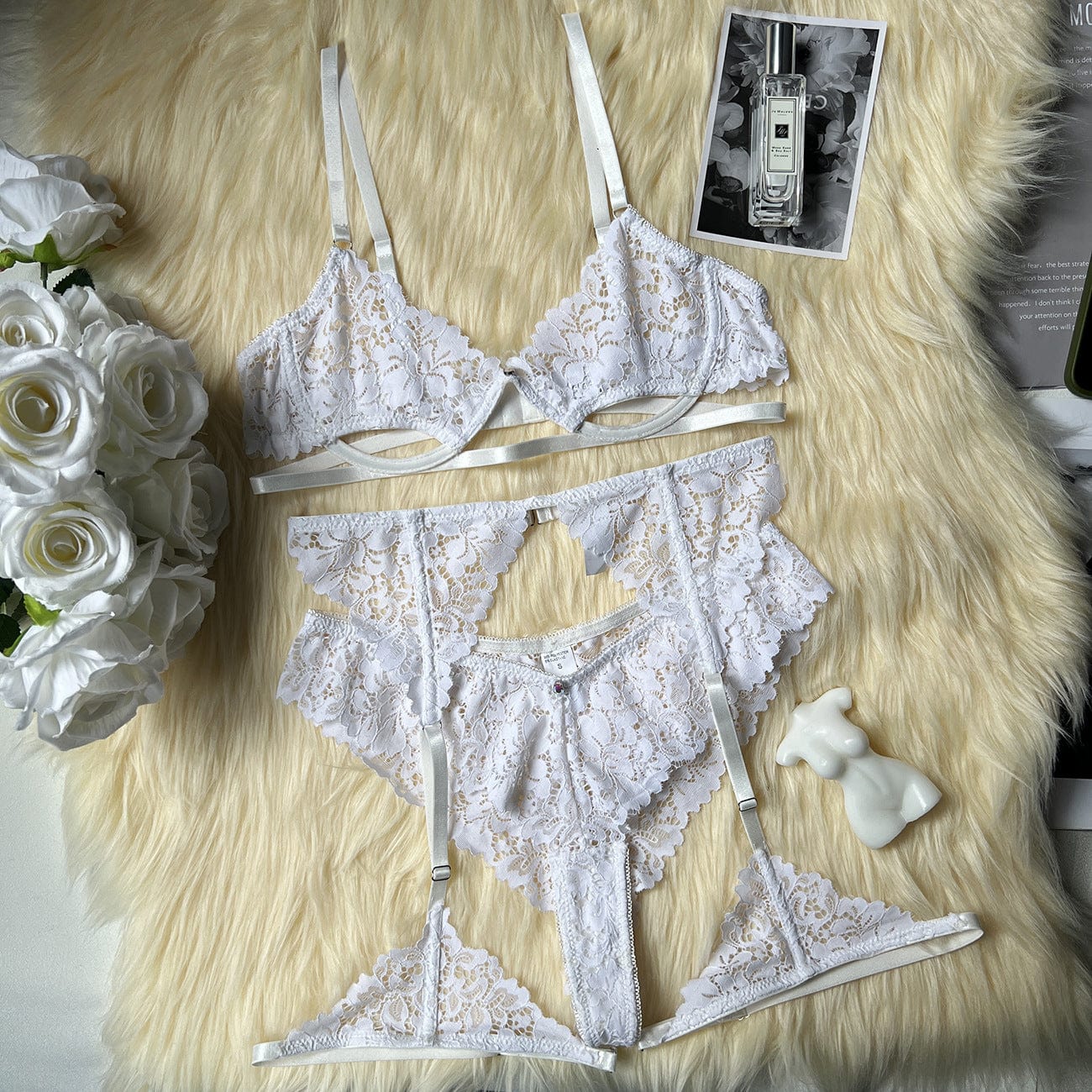• Trojdílná sada zahrnující podprsenku, podvazkový pás a tanga - perfektní volba pro každou příležitost.