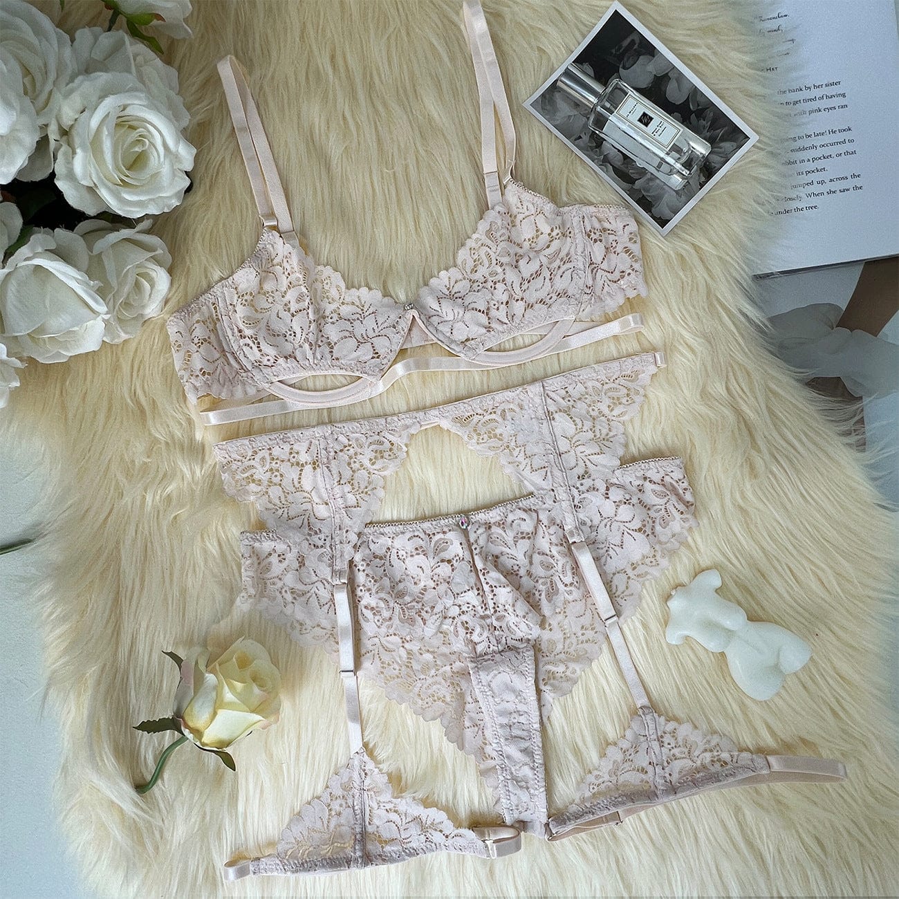 • Elegantní krajkové detaily - dodávají celému setu jemnost a eleganci.