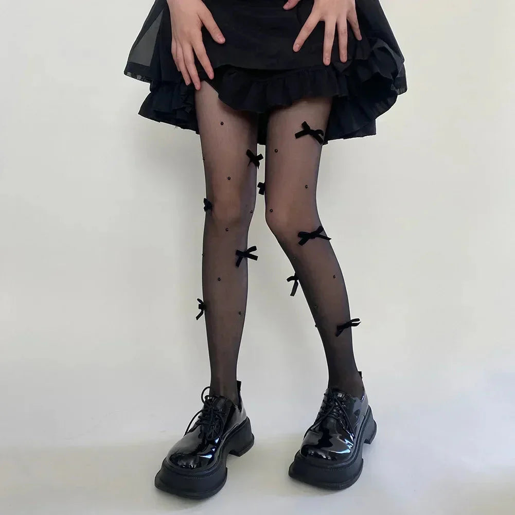 Naučte se obdivovat detaily – objevte naše dámské punčocháče s mašlemi a perlami! Tyto černé punčocháče, vyrobené z hladkého, matného materiálu, dodají eleganci a jemnost každému outfitu. Zkombinujte je s šaty na svatbu, maturitní ples, svatbu či rande, nebo je jednoduše noste na každodenní nošení či na večírek. Jejich výrazné mašle dodávají punčocháčům kouzlo a jedinečný vzhled.