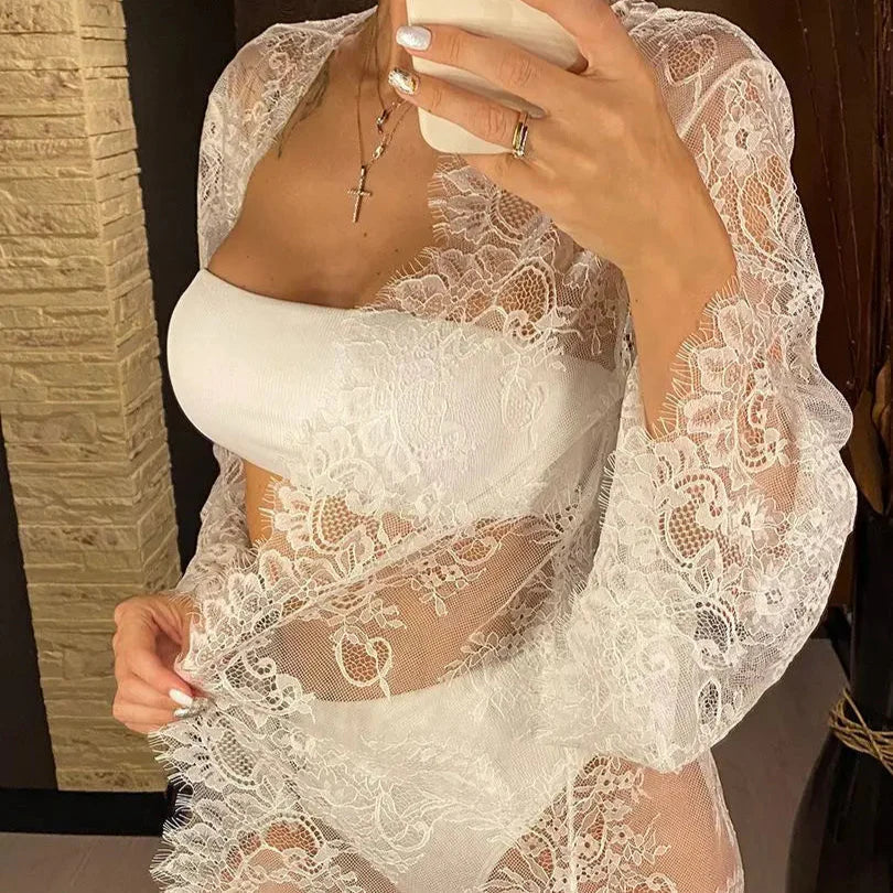 Dlouhý krajkový plážový přehoz sahající až ke kotníkům