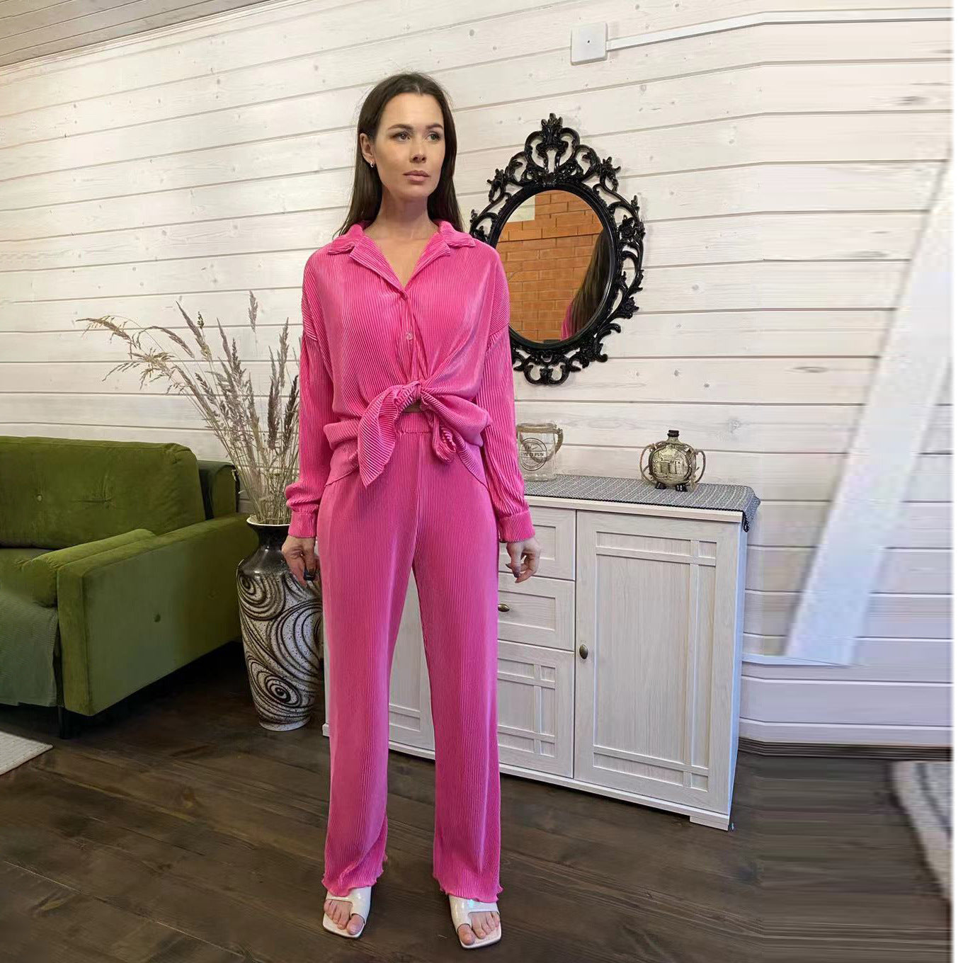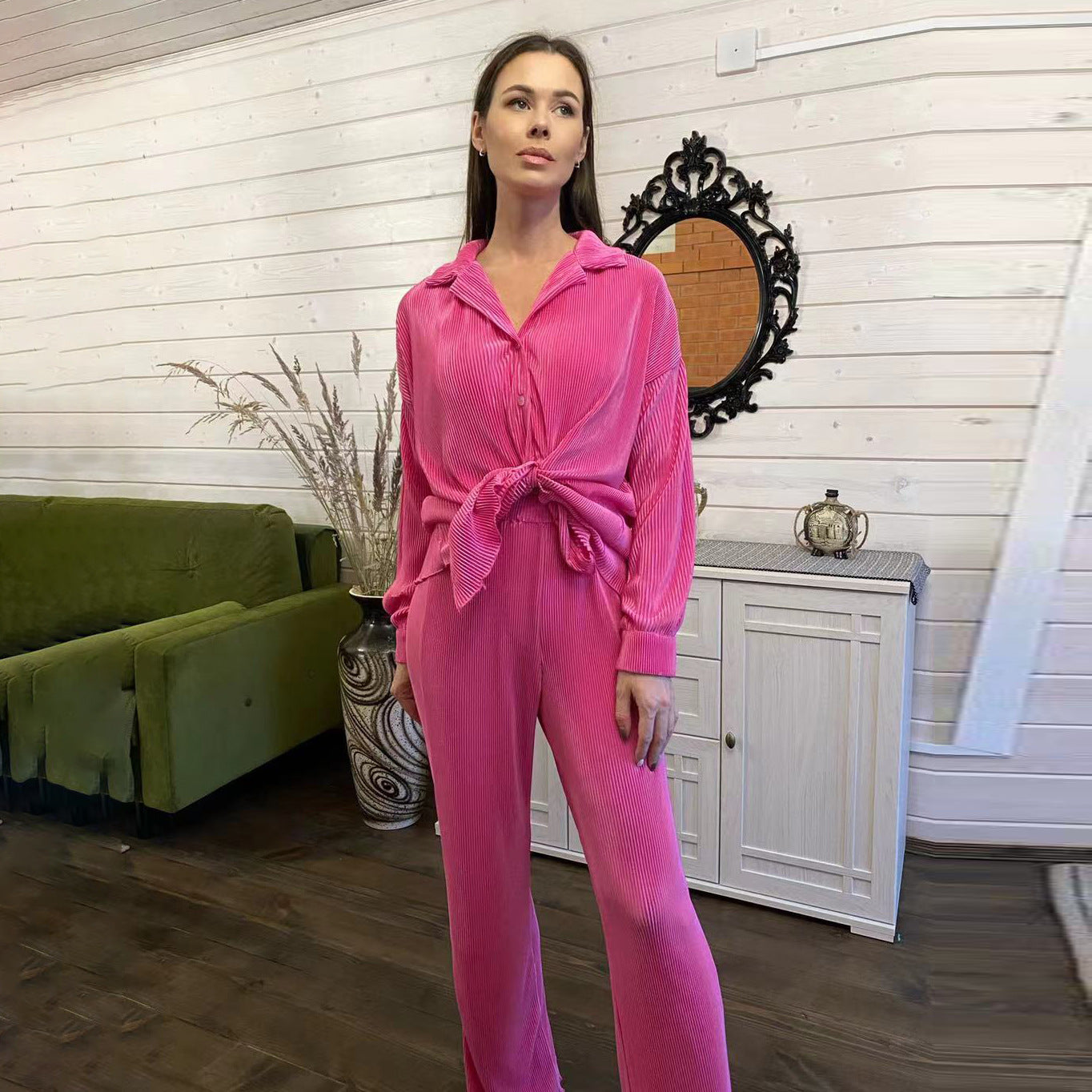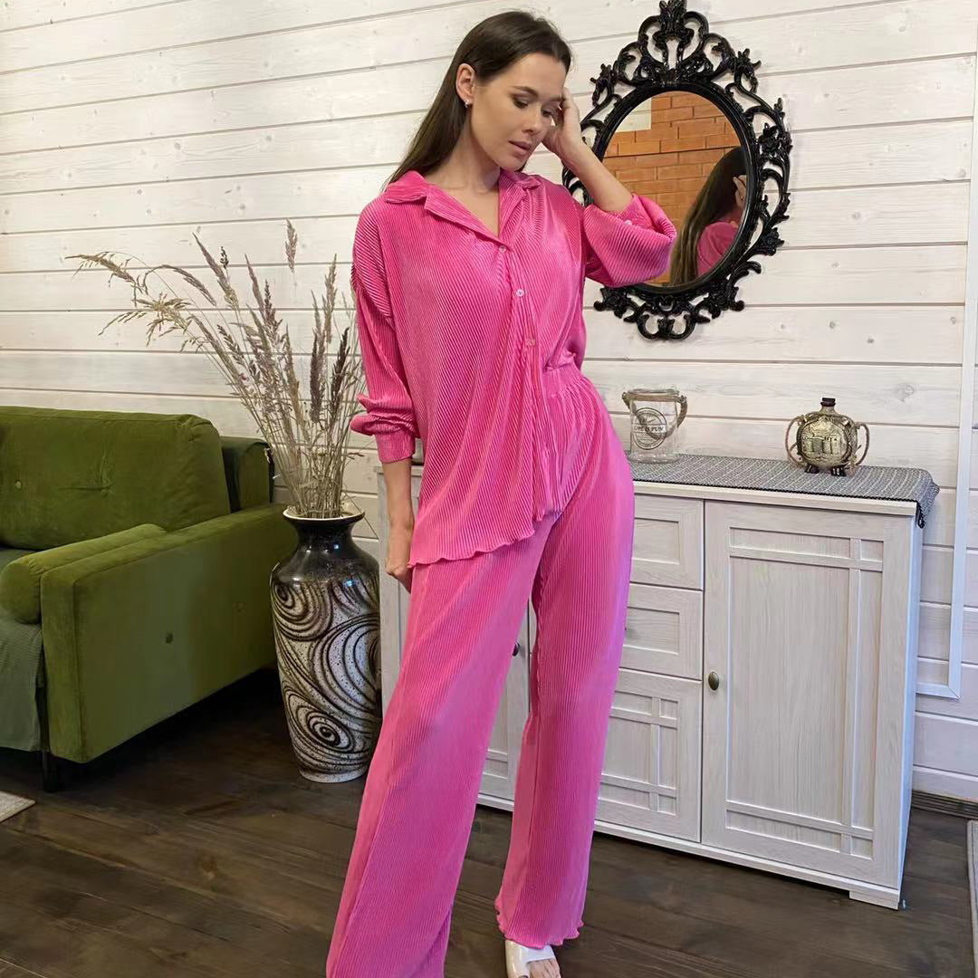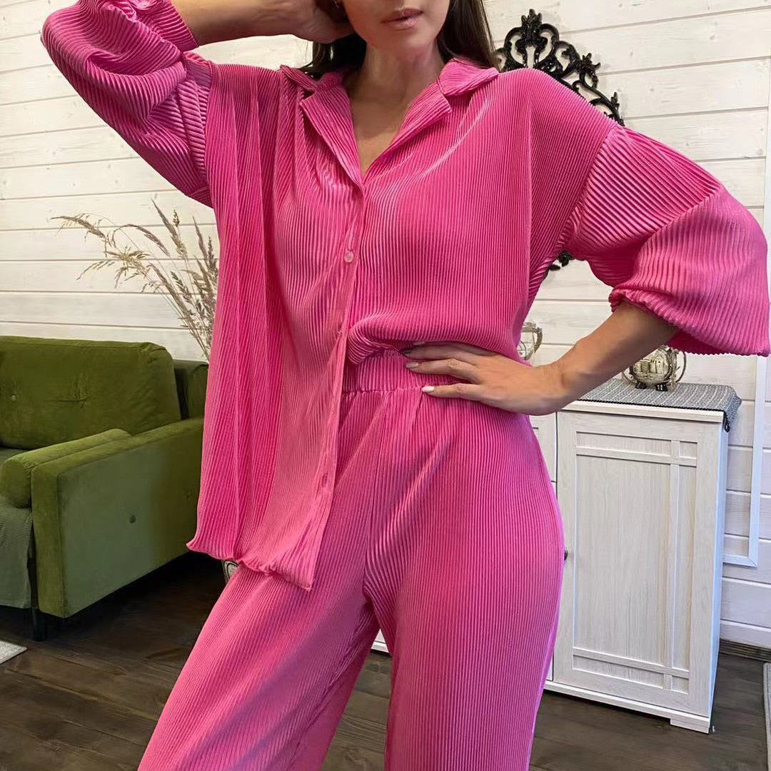 Naše dlouhé skládané pyžamo s košilí v okouzlujícím růžovém odstínu je ideální jak pro dobrý noční spánek, tak pro pohodlný den doma. Díky své všestrannosti je toto pyžamo ideální pro každé roční období a jeho charakteristické prvky, jako je límec, dlouhé rukávy a žebrovaná textura, mu dodávají jemné kouzlo. Pyžamo má navíc zapínání na knoflíky, díky čemuž je mimořádně praktické a pohodlné na nošení.