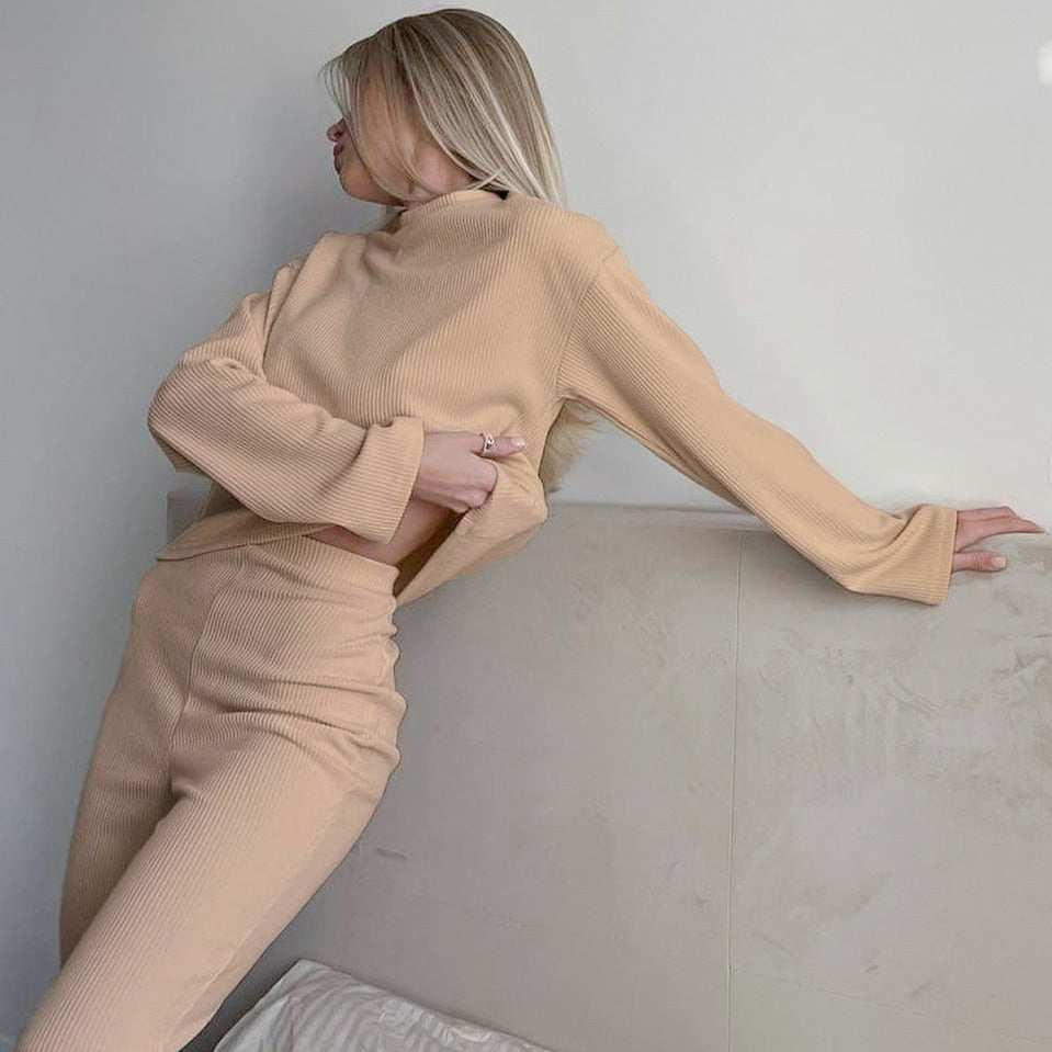 Představujeme dlouhou, žebrovanou sadu domácího oblečení, ideální pro každodenní nošení. V klasických odstínech béžové a bílé nabízí tato sada nejen pohodlí, ale i nadčasový styl, který se hodí do každého ročního období. S kulatým výstřihem, dlouhými rukávy a kalhotami je tato sada ideální pro útulné večery doma. Zvolte pohodlí a eleganci v jednom!