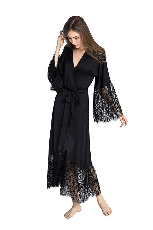 Dlouhý saténový župan s krajkou