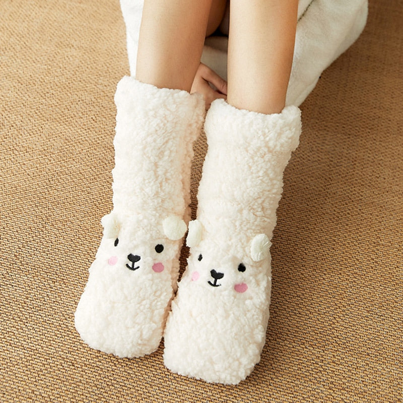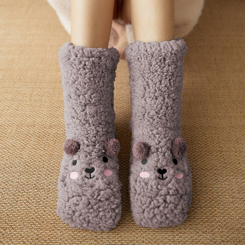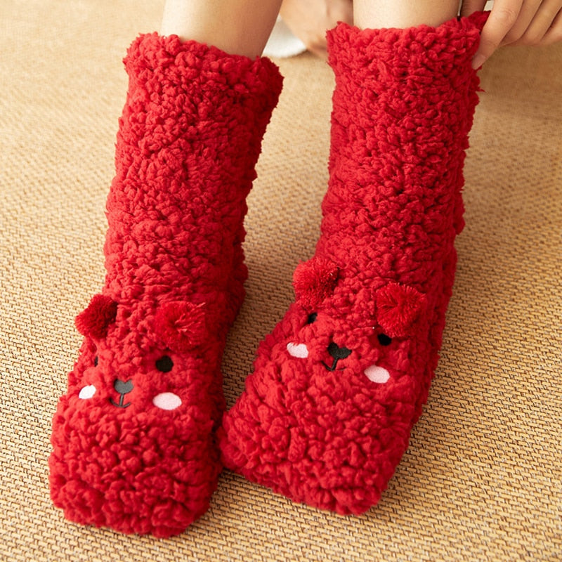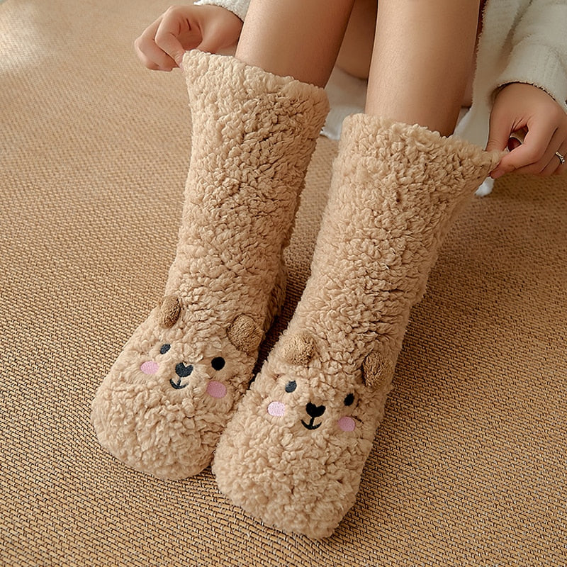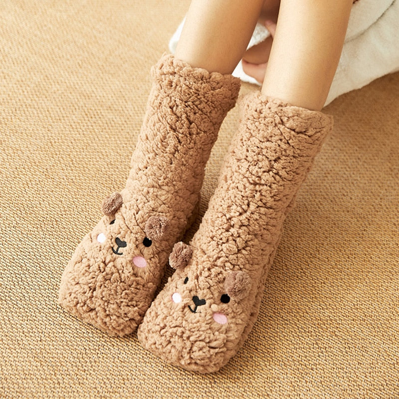 Dlouhé nadýchané dámské ponožky s motivem medvídka