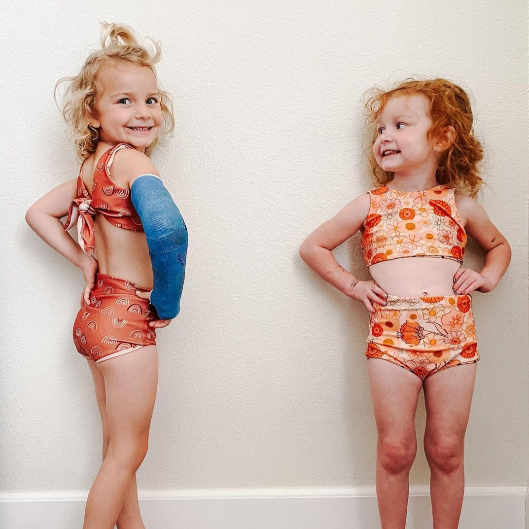 Tyto dvoudílné plavky jsou perfektní volbou na léto! Díky inovativnímu oboustrannému designu je můžete nosit ve dvou různých stylech – s leopardím potiskem na jedné straně a s květinovým potiskem na druhé. Kalhotky mají vysoký pas pro pohodlí a moderní retro vzhled. Vrchní díl se zavazuje vzadu pro snadné nošení a větší volnost pohybu.