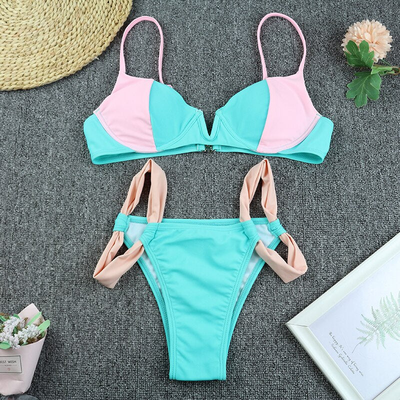 Tyto plavky jsou ideální na pláž nebo k bazénu v létě. Podprsenka je vyztužená a má další výstelky, které poskytují lepší oporu a tvarují poprsí. Podprsenka má také ramínka, která pomáhají držet na místě. Spodní díl těchto bikin je kalhotkový, zakrývá většinu hýždí a má ramínka po stranách. Charakteristickým rysem těchto bikin je rozparek mezi prsy, který dodává bikinám sexy vzhled a jedinečný styl.