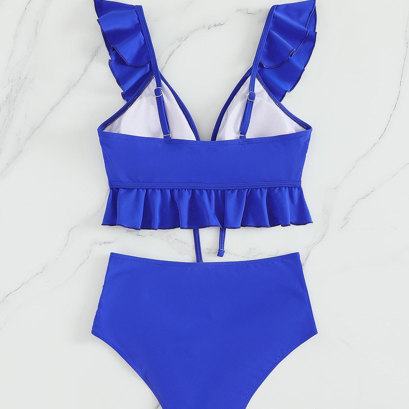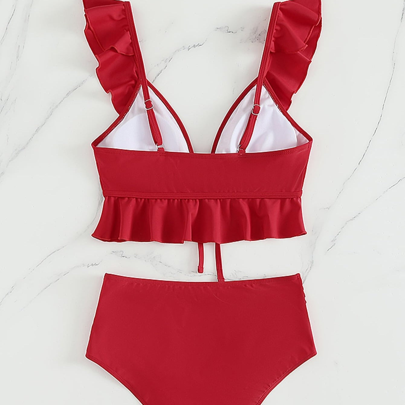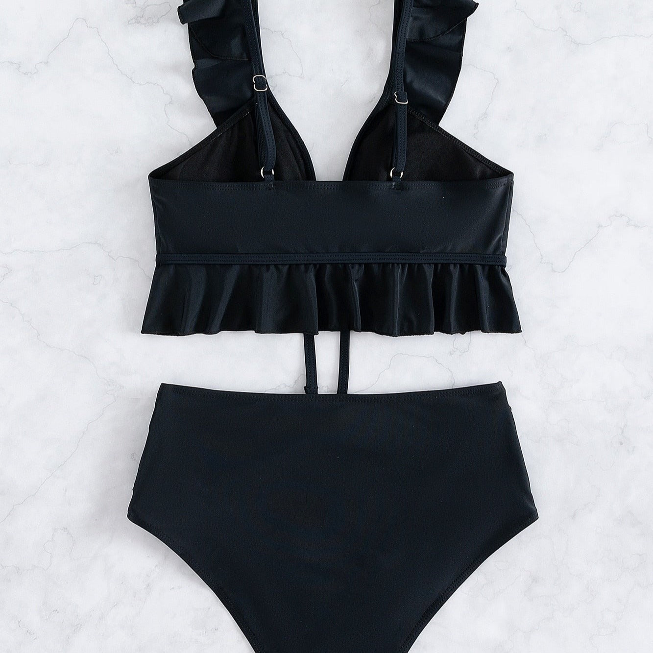 Dvoudílné jednobarevné bikiny s volánkem