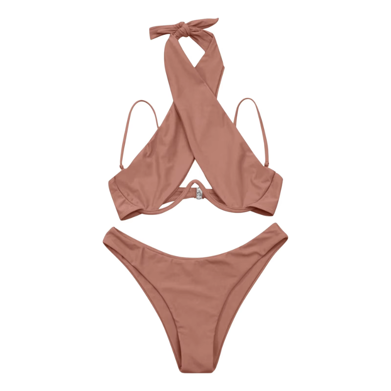 Všestranné bikiny se zavazováním se vyznačují podprsenkou, kterou lze nosit různými způsoby a přizpůsobit se velikosti vašeho poprsí nastavením zavazování u krku a na zádech. Spodní díl bikin je kalhotek, který mírně zakrývá hýždě. Kalhotky jsou elastické a přizpůsobí se tvaru těla. Všestranné bikiny se zavazováním jsou oblíbenou volbou, protože umožňují individuální střih a poskytují pohodlí při aktivitách u vody nebo na pláži. Všestranné zavazování navíc umožňuje snadné nastavení horního dílu bikin a různé styly.