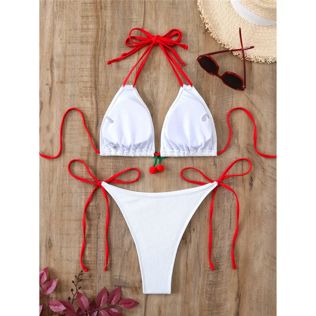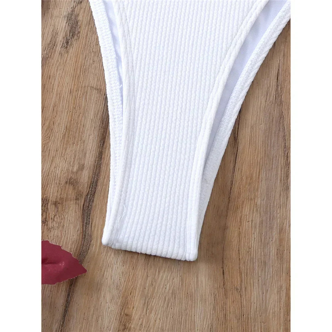 Dvoudílné plavky s elastickými zapínáními na bocích a krku