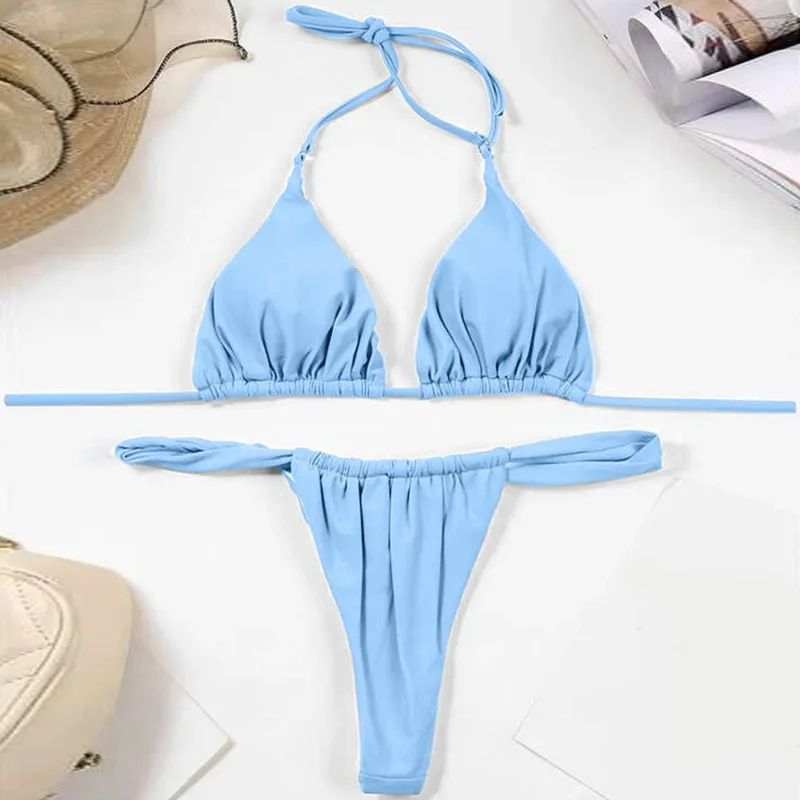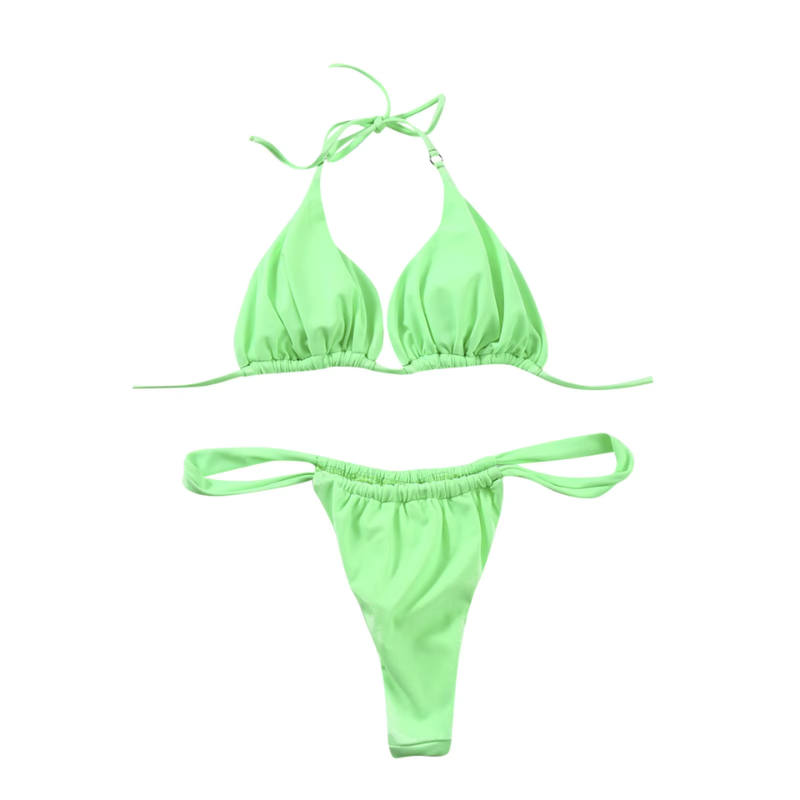Výjimečně ženské a sexy plavky, ideální na pláž, k bazénu nebo na dovolenou. Plavky jsou hladké a bez vzoru, díky čemuž jsou nadčasové a všestranné. Podprsenka v těchto bikinách má trojúhelníkové košíčky bez vyztužení, které zajišťují pohodlí a přirozené poprsí. Hluboký výstřih dodává sexepíl a zdůrazňuje ženské křivky. Spodní díl je brazilský, který má hluboký výstřih a zdůrazňuje boky. Zavazování a nastavitelná ramínka zajišťují perfektní střih.