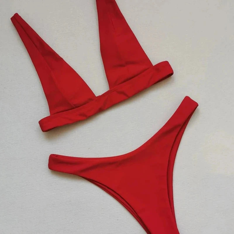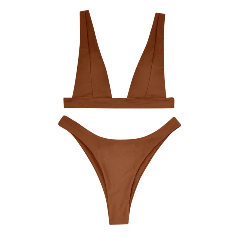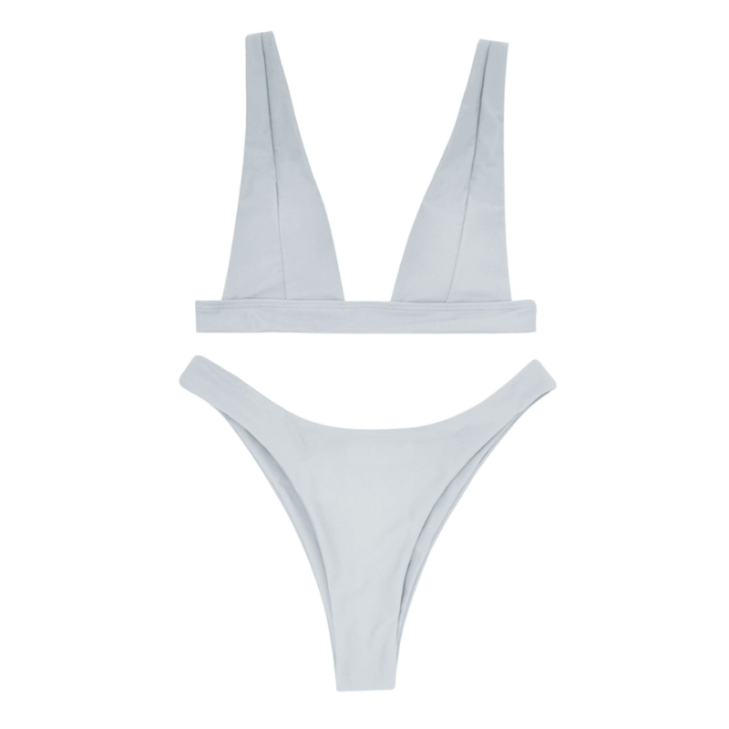Bikiny s vysokým výstřihem dole a trojúhelníkovými košíčky na tlustých ramínkách jsou oblíbenou volbou žen během letní plavkové sezóny. Tento styl je velmi ženský a stylový, zdůrazňuje křivky a posiluje sebevědomí. Výřezy po stranách spodního dílu jsou velmi výrazné a opticky prodlužují nohy. Trojúhelníkové košíčky na tlustých ramínkách jsou pohodlné a poskytují poprsí dostatečnou oporu.