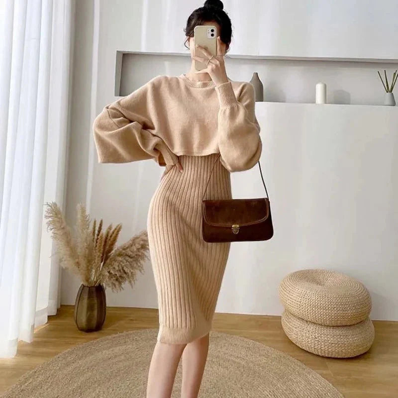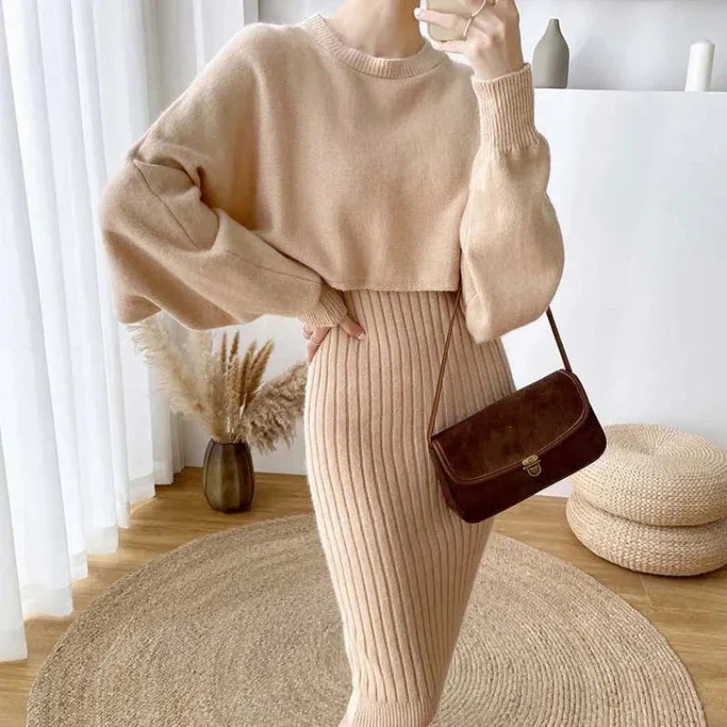 Pletená souprava domácího oblečení s šaty