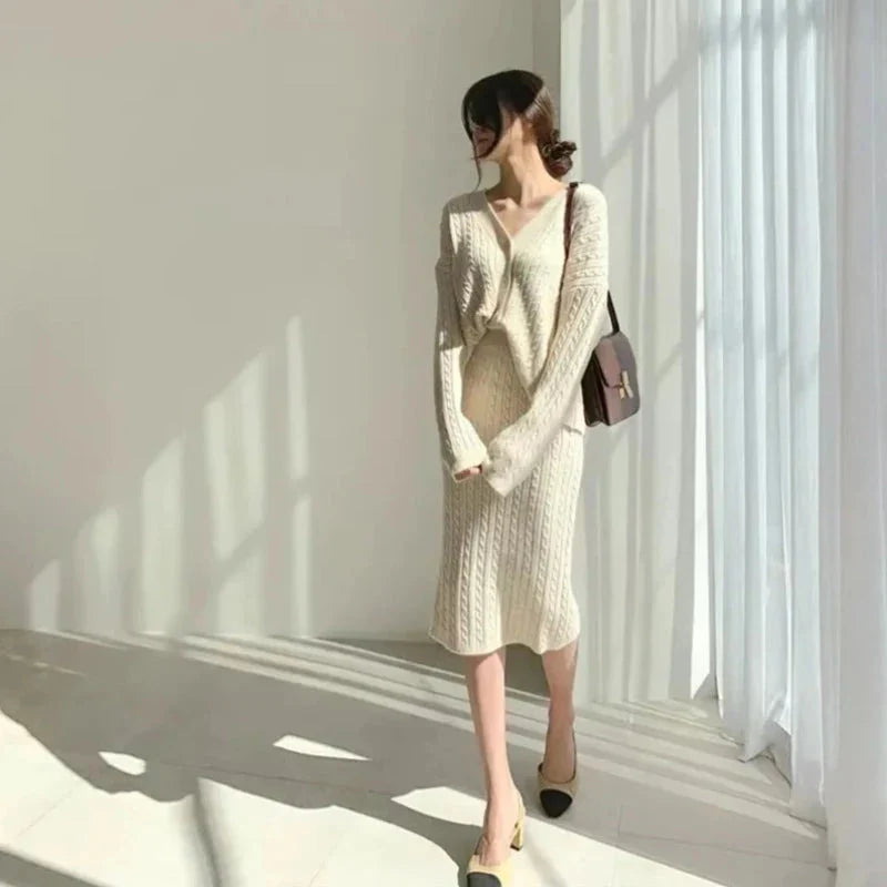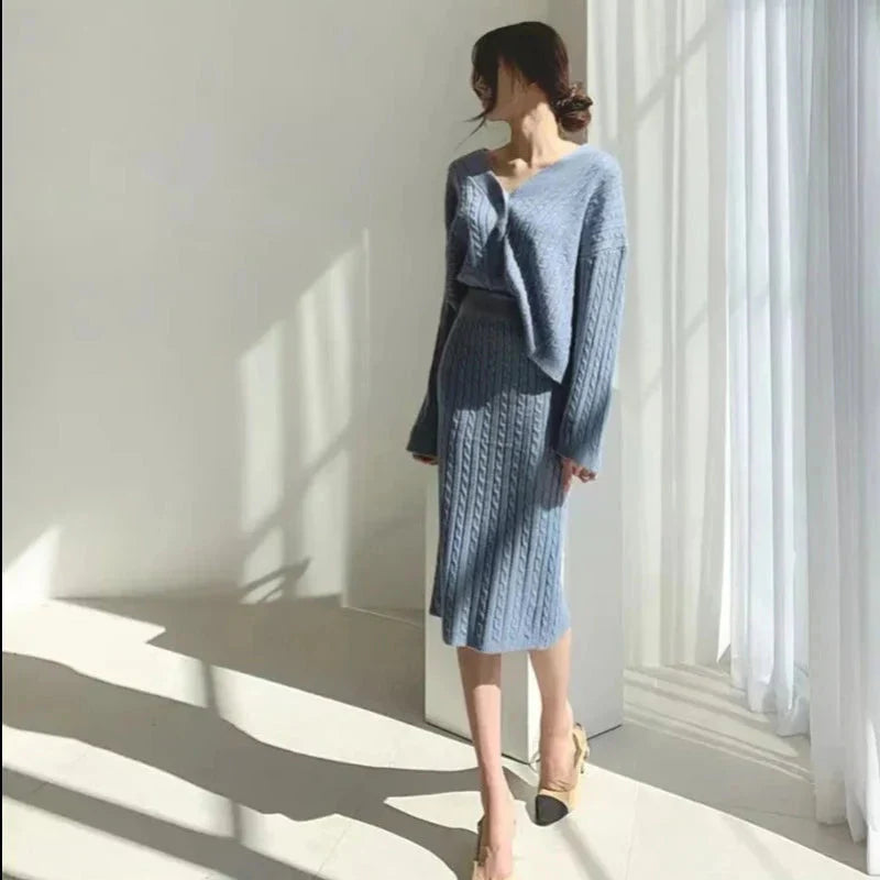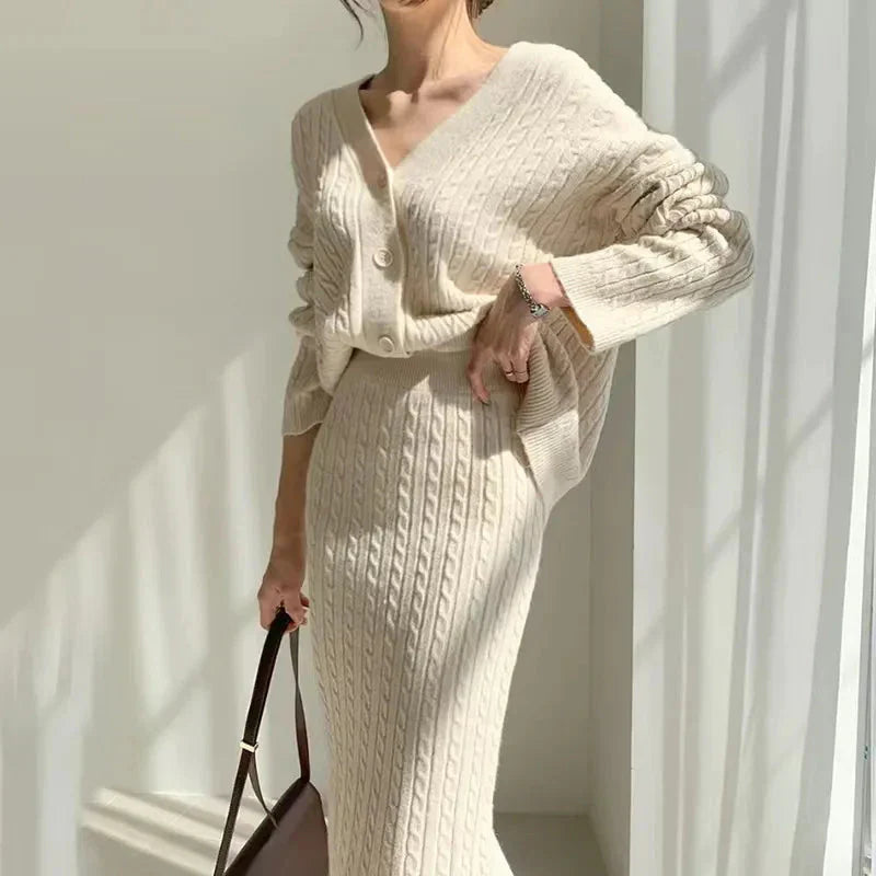 Pletená souprava domácího oblečení se sukní