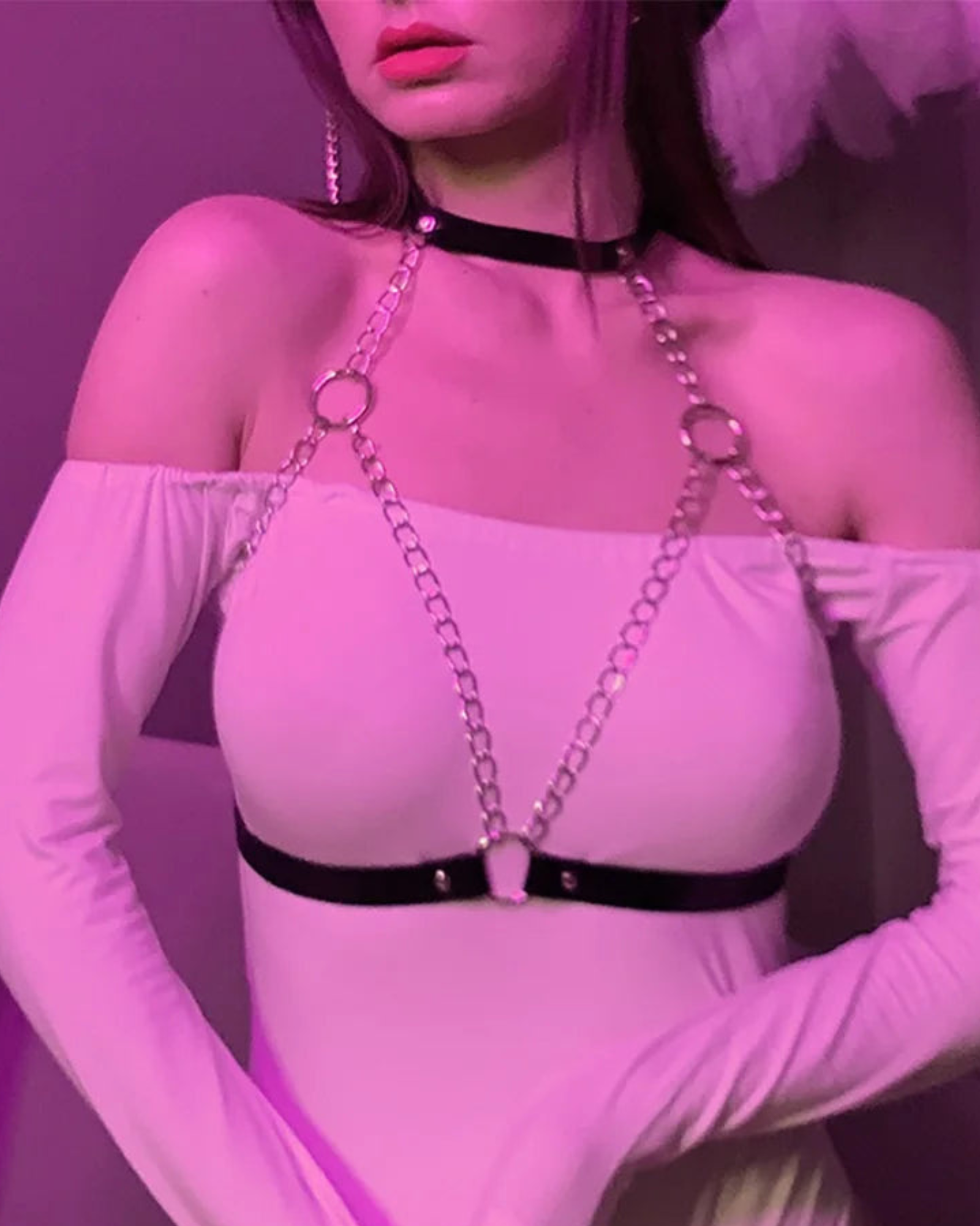 Tento postroj je harmonickou směsicí jemnosti a pevnosti. Jemné řetízky splývají po těle a vytvářejí výrazný, ale zároveň ženský vzhled. Nastavitelné popruhy zajišťují perfektní padnutí a robustní kovové přezky zvyšují sebevědomí v jakémkoli prostředí.