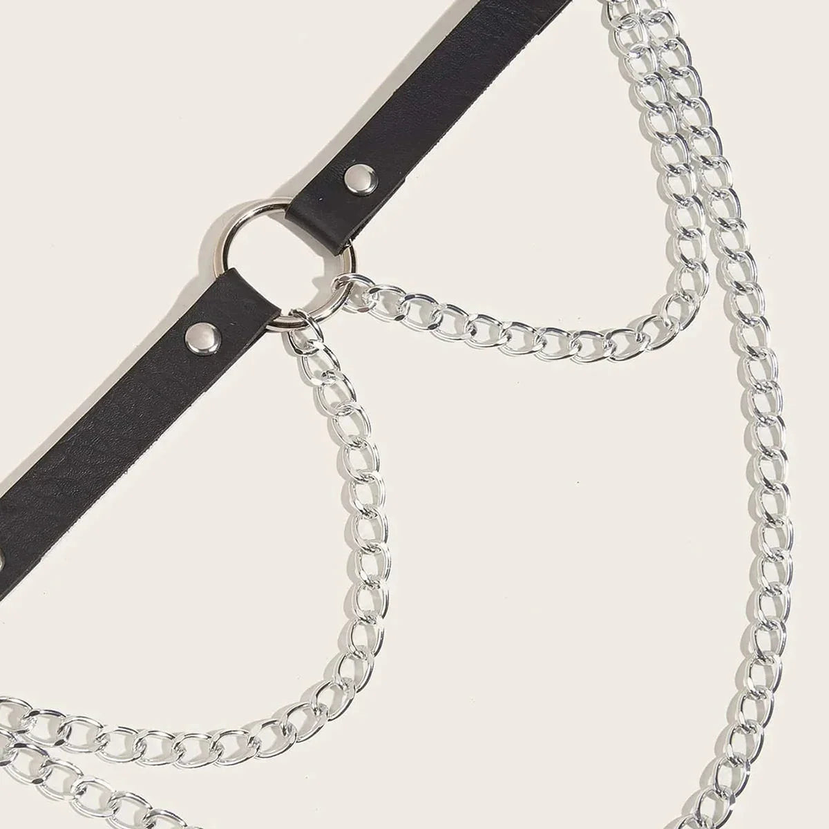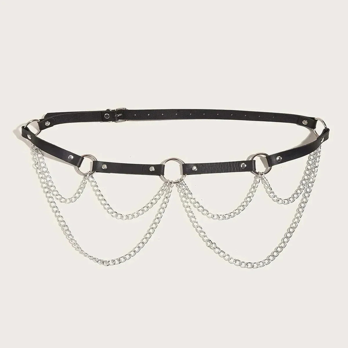 Tento černý bederní postroj s ozdobnými řetízky je vyroben z odolné umělé kůže a je ideální pro různé příležitosti, od rande přes večírek až po Valentýna. Je nastavitelný, takže si ho můžete přizpůsobit svým preferencím, a ozdobné řetízky dodávají nádech šarmu a smyslnosti.