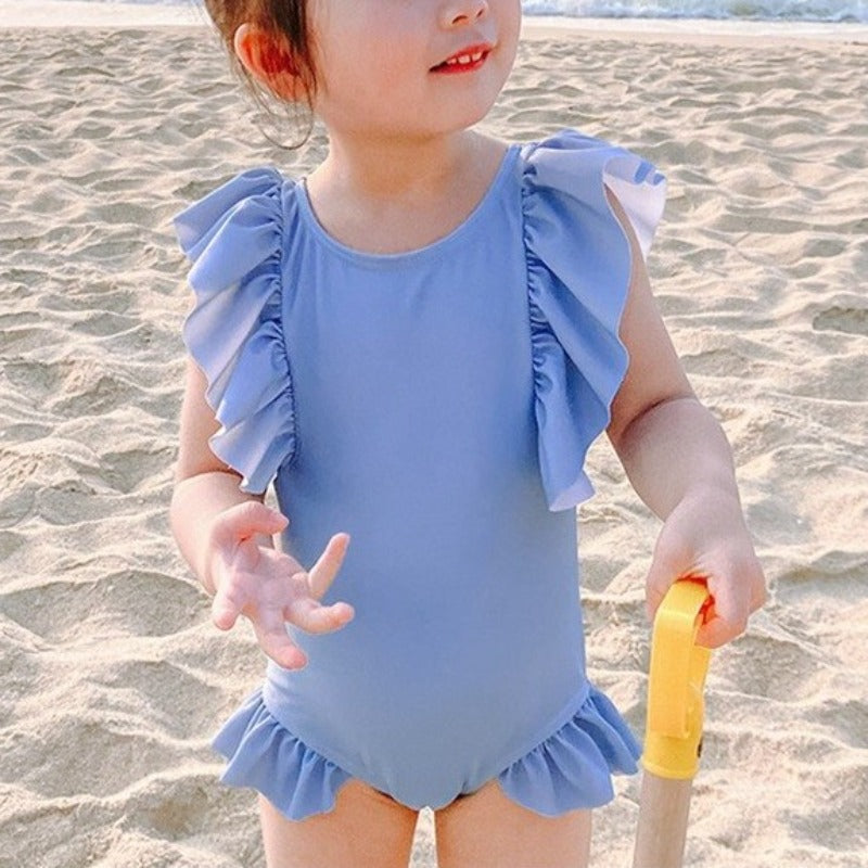 Jednodílné plavky s volánky pro dívky