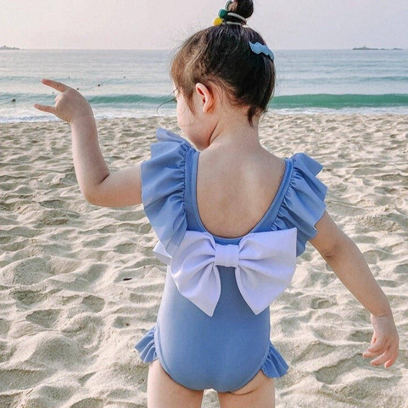 Tyto dívčí plavky s mašlí na zádech, motýlími rukávy a volánky jsou perfektní volbou pro každou mladou dámu, která ráda vynikne svým stylem na pláži nebo u bazénu. Plavky se vyznačují krásnou mašlí na zádech, která jim dodává nádech šarmu, zatímco motýlí rukávy a volánky jim dodávají lehký a jemný vzhled. Plavky jsou vyrobeny z měkkého a pružného materiálu a zajišťují pohodlí a volnost pohybu při plavání nebo hraní ve vodě.