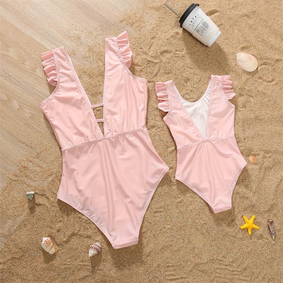 Jednodílné plavky s volánky pro matku a dceru