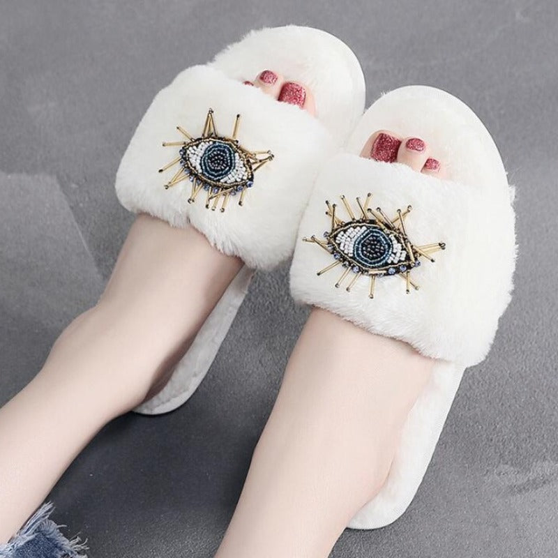 Máme perfektní volbu pro milovníky jedinečných designů! Tyto pantofle jsou vyrobeny z měkkého materiálu a mají otevřené prsty, takže se můžete volně pohybovat po domě, aniž byste se cítili nepohodlně. Jejich jedinečný design přitahuje pozornost a dodává každému outfitu nádech elegance. Měkká kožešinová podšívka poskytuje teplo a pohodlí v chladnějších dnech, zatímco pevná podrážka zaručuje pohodlí a stabilitu.