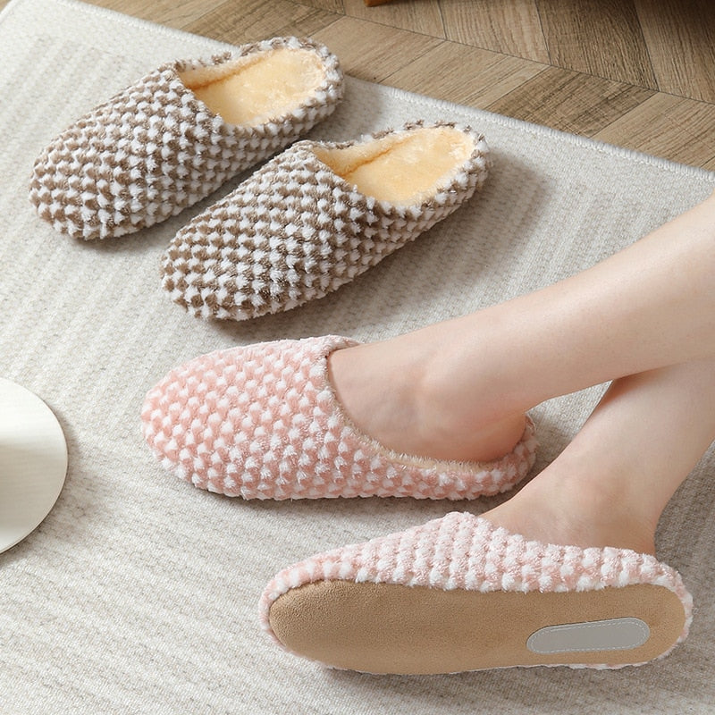 Zajistěte si pohodlí a teplo s našimi kostkovanými uzavřenými pantoflemi. K dispozici v různých barvách – od jemné růžové, přes elegantní hnědou až po klasickou černou – doplní jakýkoli styl domácnosti. Kostkovaný vzor, ​​univerzální a nadčasový design, dodává kouzlo, zatímco nadýchaný povrch udrží vaše nohy v teple. Tyto pantofle jsou určeny pro lenošné dny doma, kdy se chcete cítit útulně a pohodlně.