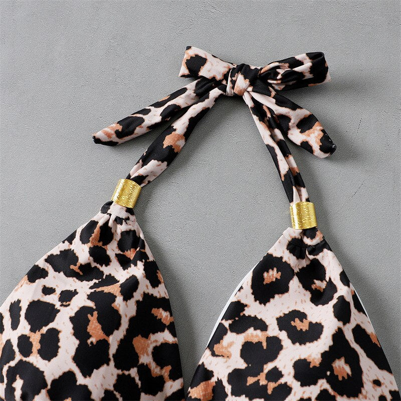Klasické jednodílné plavky s leopardím vzorem a výstřihem do V