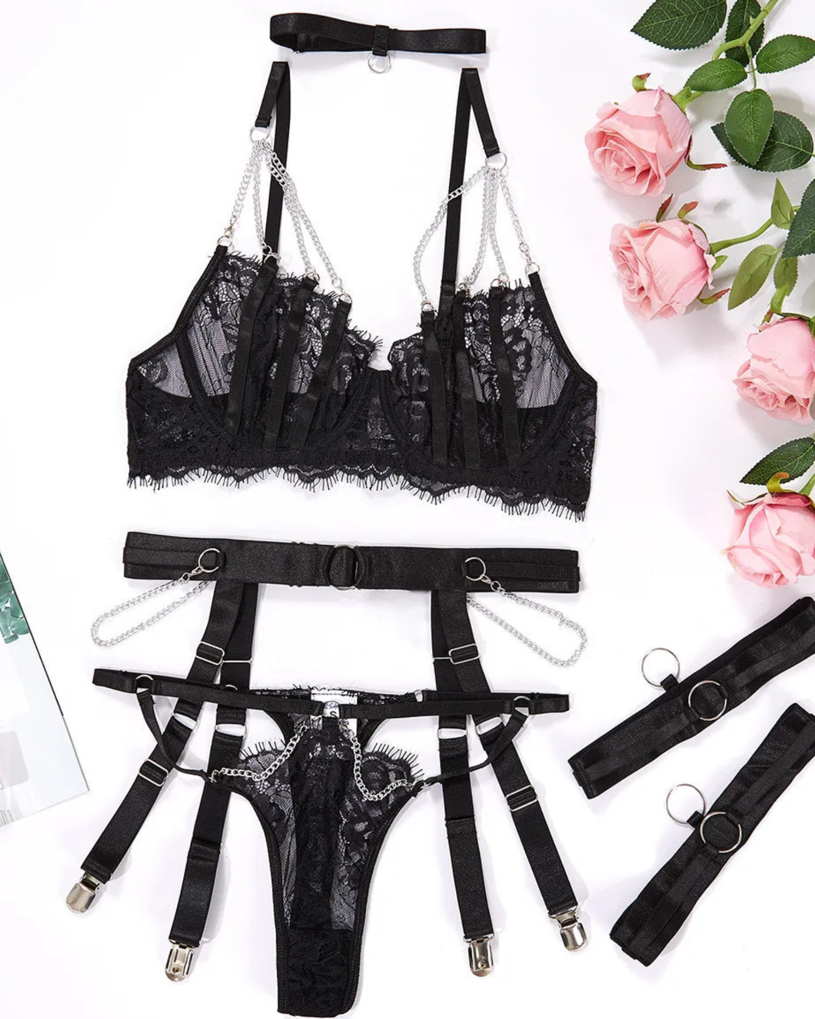 Smyslná sada spodního prádla s kovovými řetízky