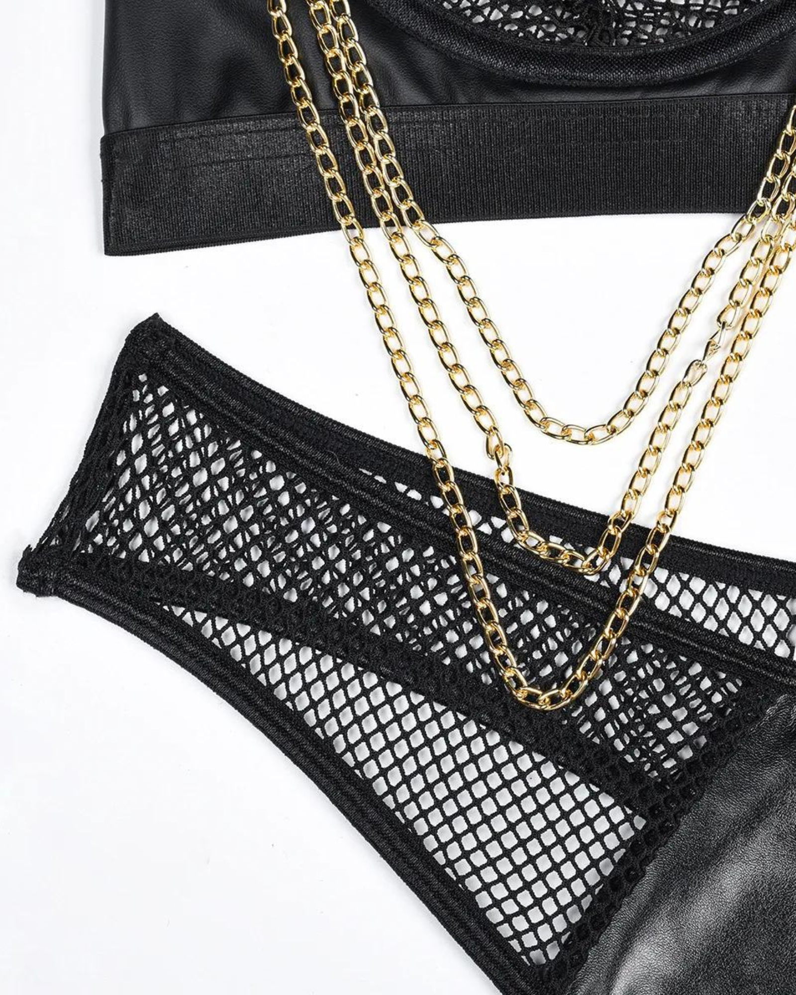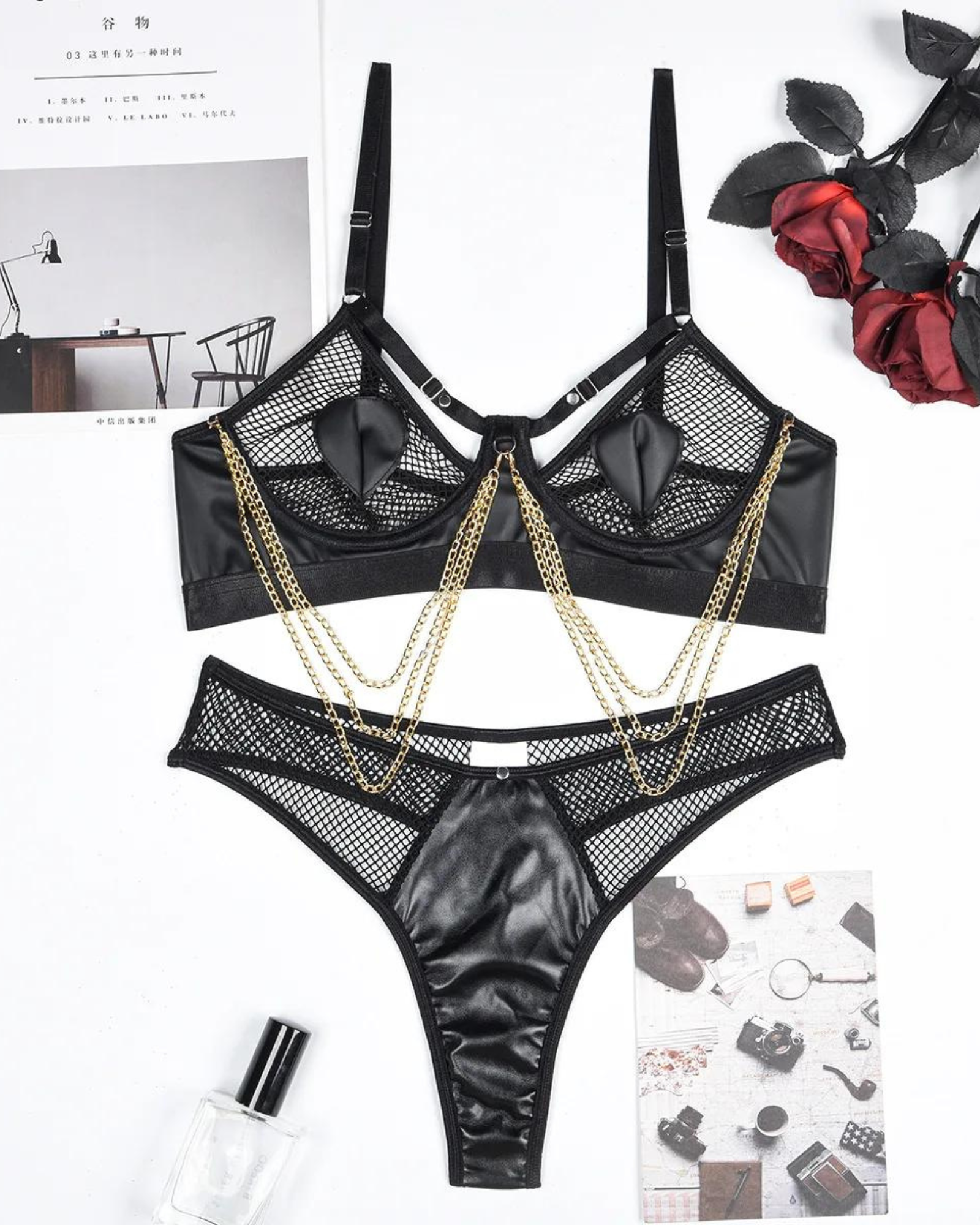 Souprava spodního prádla se síťovanou podprsenkou a řetízky