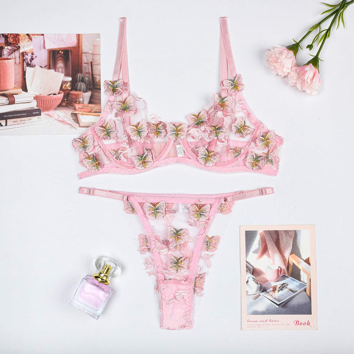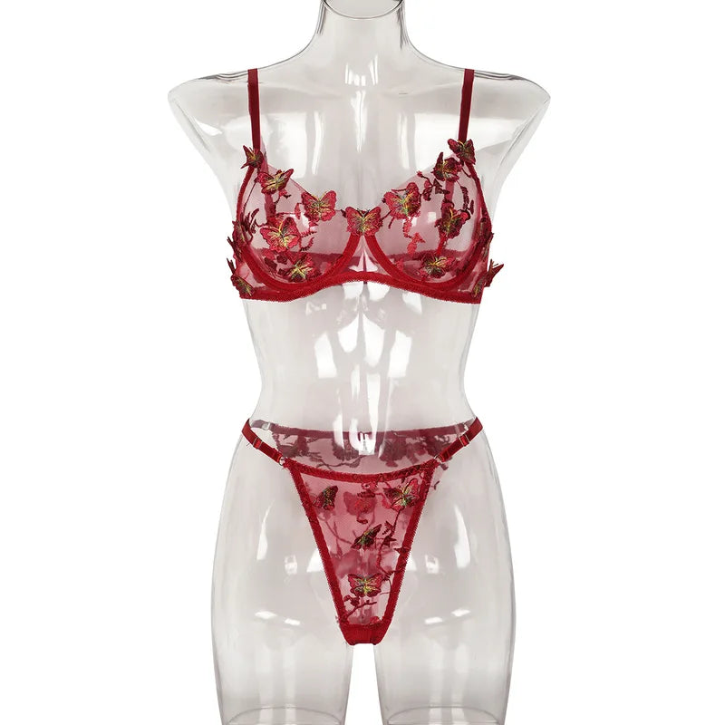 Sada krajkového spodního prádla s ozdobným motivem motýla