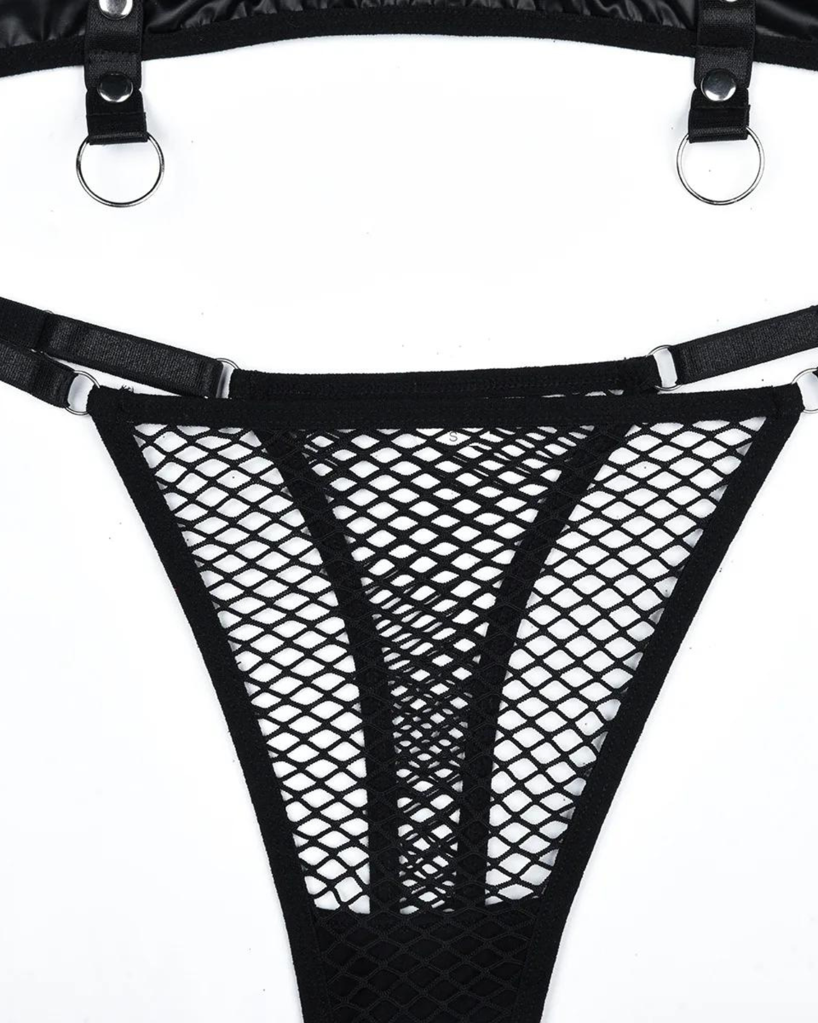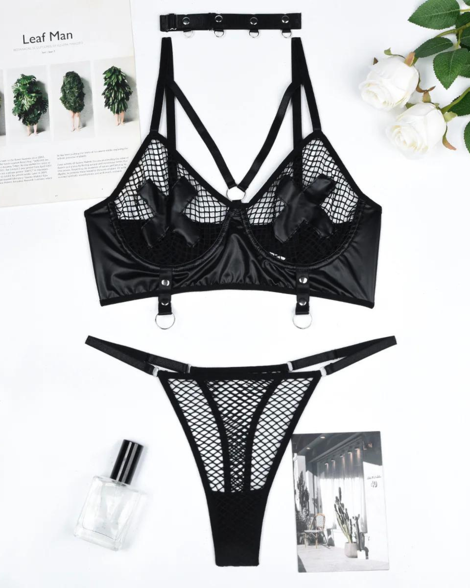 Sada spodního prádla s ozdobnými křížky a koženými prvky