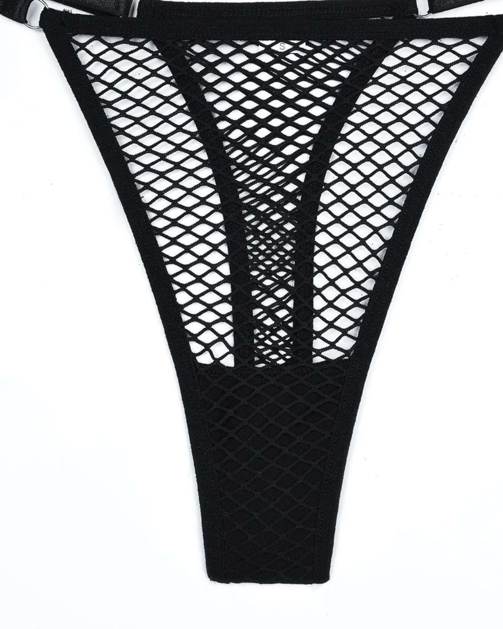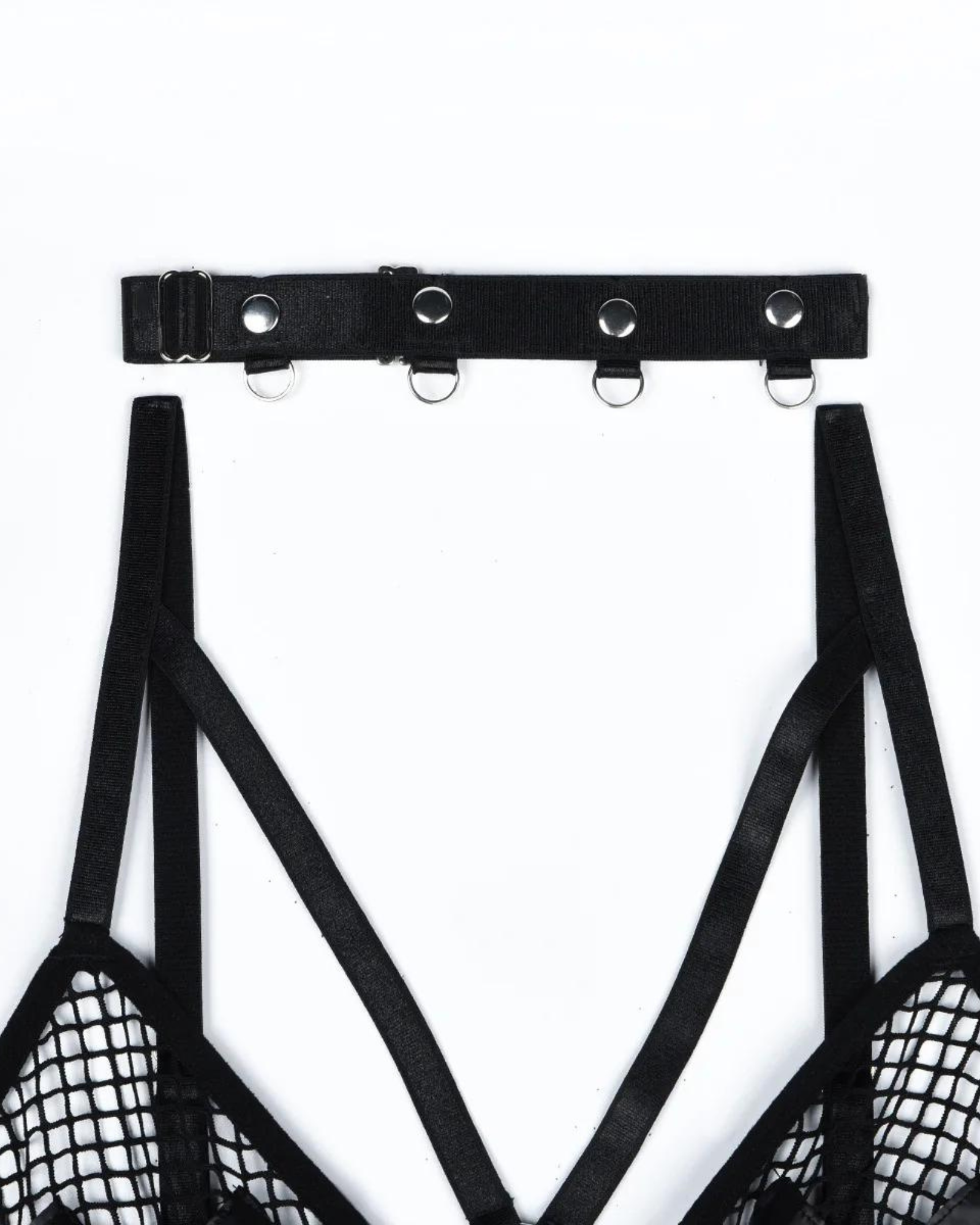 Síťované kalhotky dokonale doplňují podprsenku a vytvářejí ucelený celek. Módní choker zdůrazňuje krk a dodává mu špetku pikantnosti.