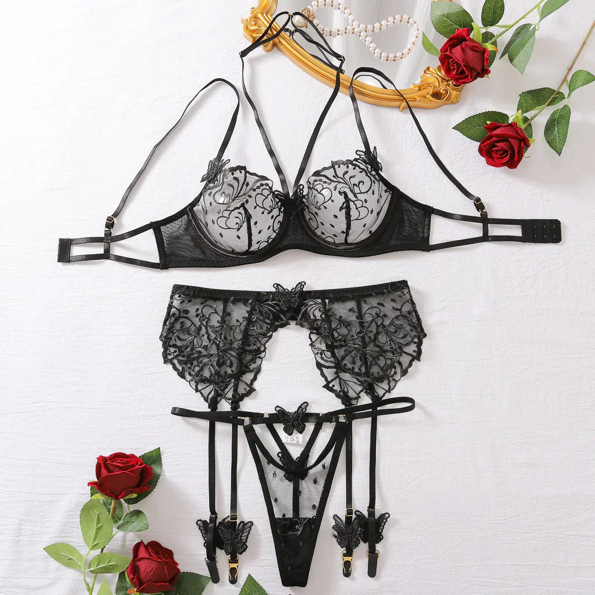 • Kompletní sada s podvazkovým pásem a tangami - vytvořte si jedinečný vzhled pro každou příležitost.