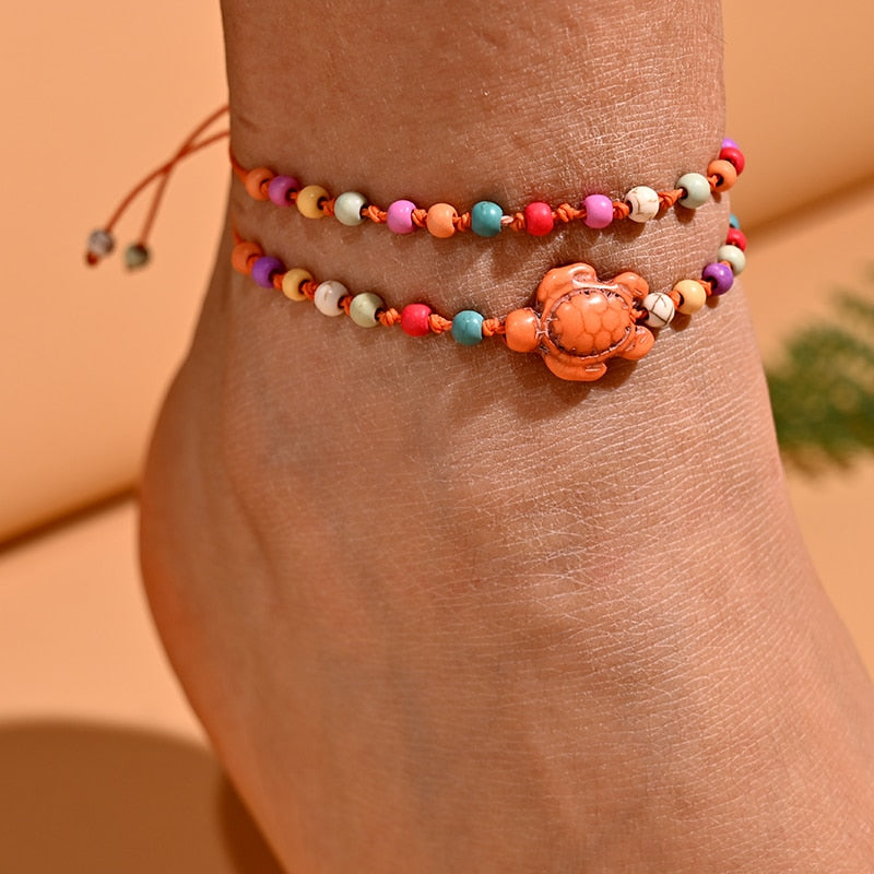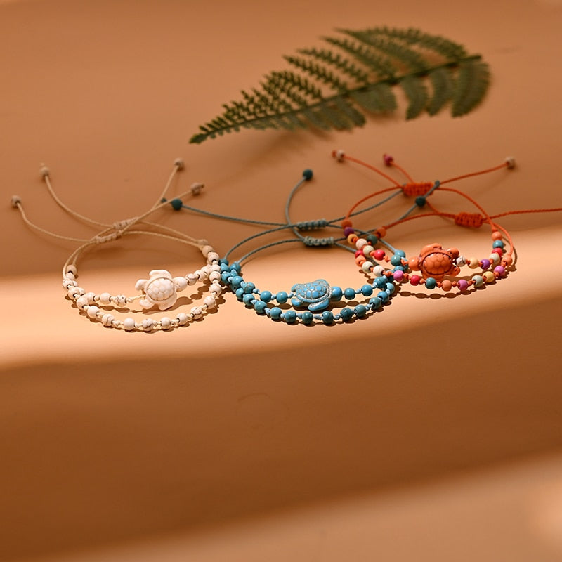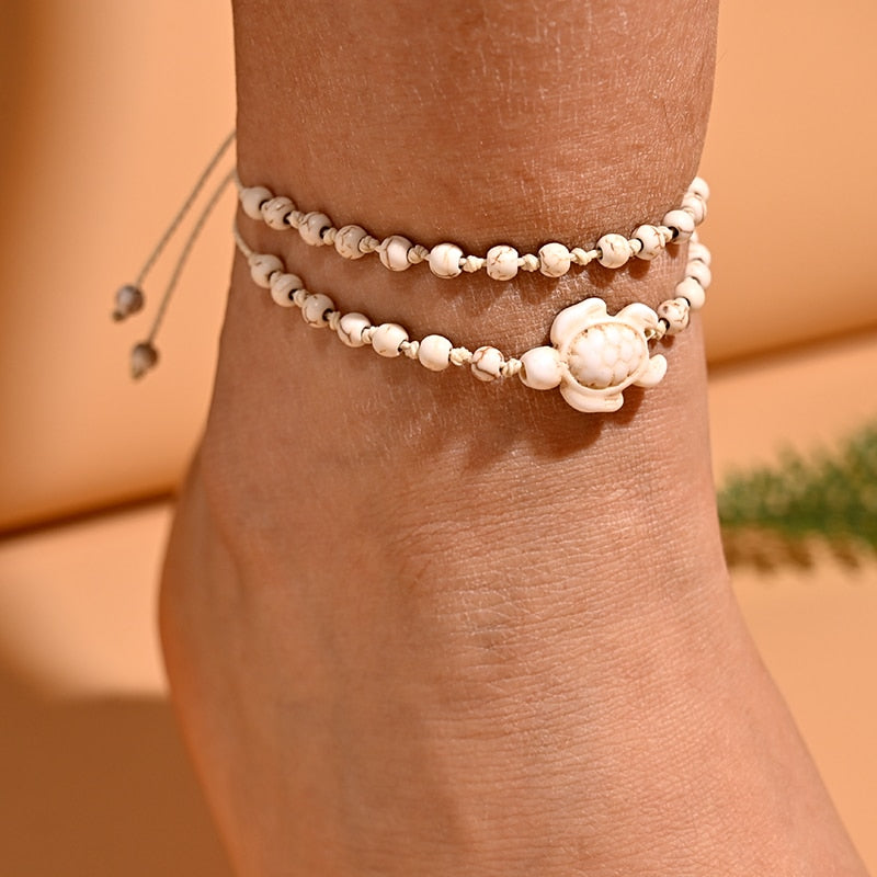 Sada dvou náramků na kotník s motivem želvy