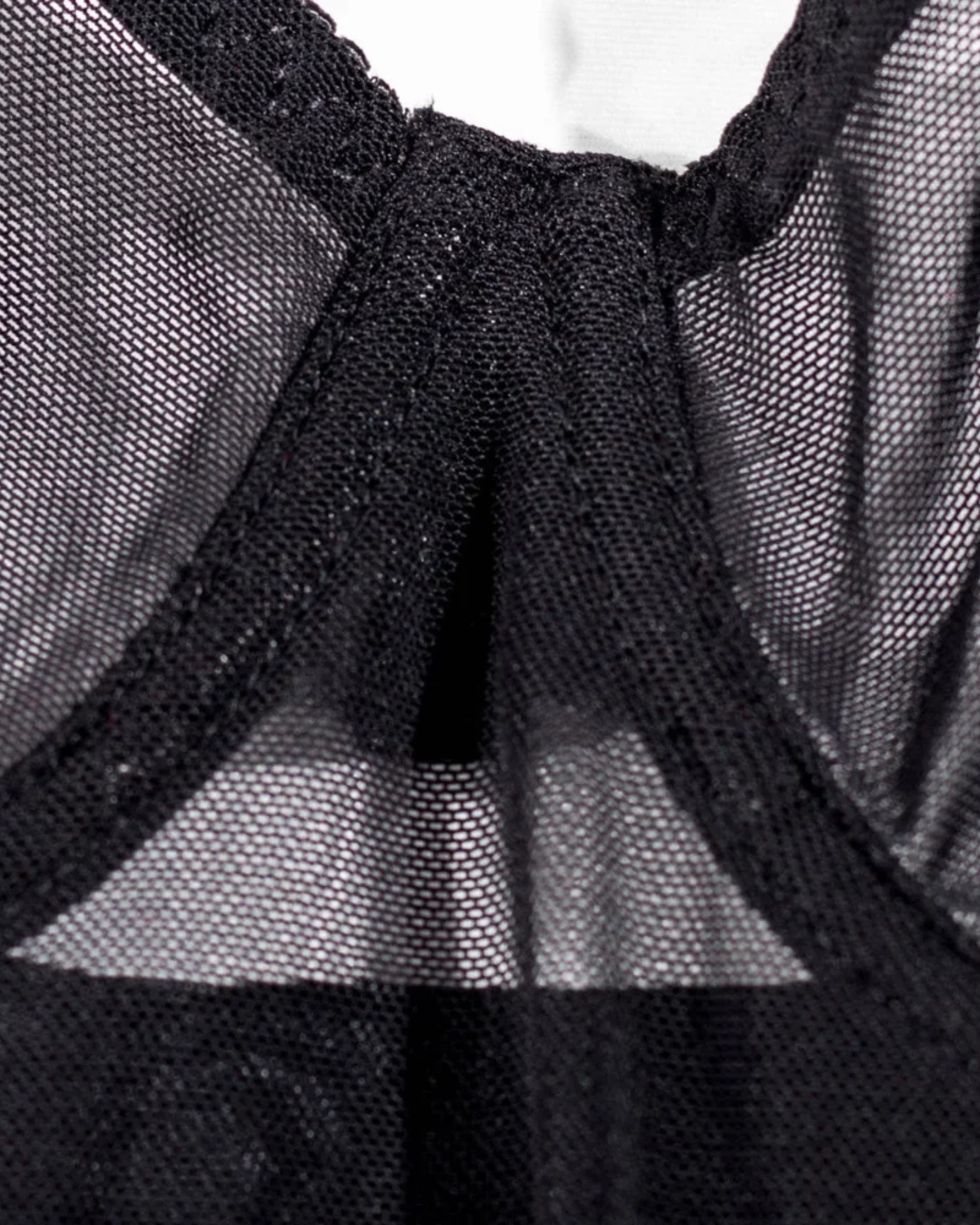 Připravte se objevit svou smyslnou stránku s touto jedinečnou noční košilí. Je vyrobena z decentní, průsvitné látky a dokonale zdůrazní vaše přednosti, aniž by odhalovala příliš mnoho. Zajímavé zavazování na zadní straně decentně odhaluje vaše záda a hýždě a dodává vzhledu nádech pikantnosti, zatímco nastavitelná ramínka zaručují perfektní střih.