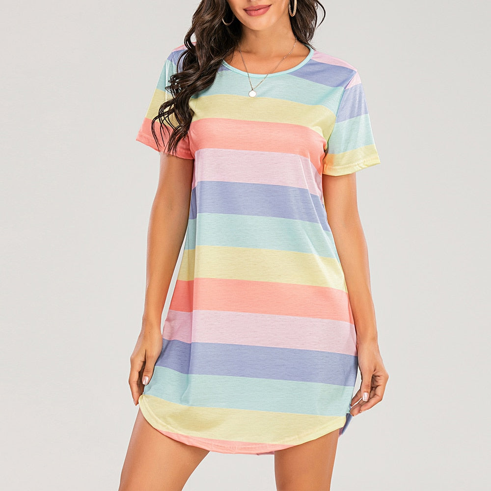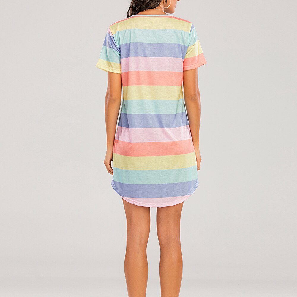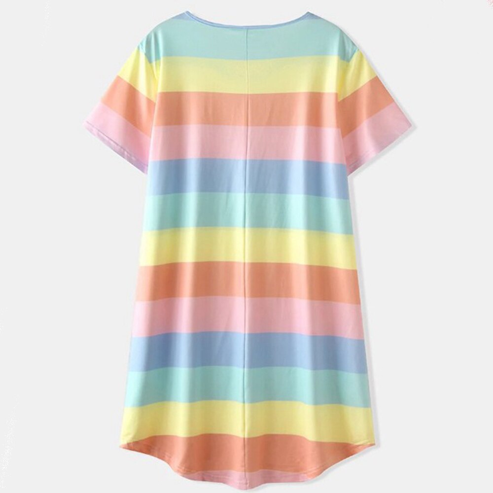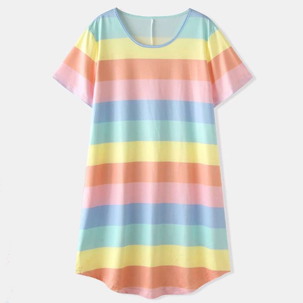 Toto je perfektní volba pro ženy, které si u svého nočního prádla cení pohodlí a zářivých barev. Pohodlný střih této noční košile zajišťuje pohodlí během spánku a umožňuje vám volný pohyb po celou noc. Barevné pruhy dodávají noční košili nádech energie a radosti, díky čemuž je ranní probuzení příjemnější. Tato noční košile je vyrobena z měkkého materiálu, takže je šetrná k pokožce, aniž by způsobovala podráždění.