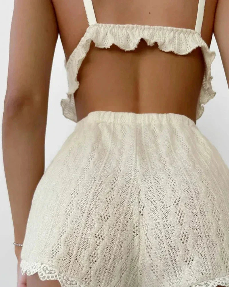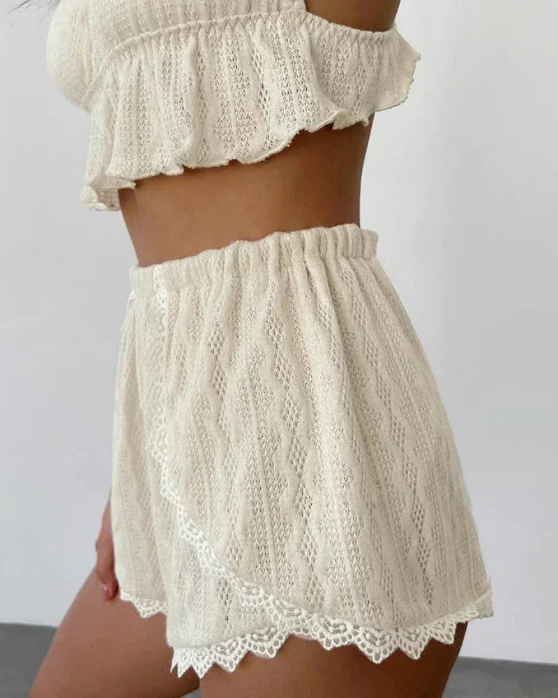Krátké prolamované pyžamo s krajkou
