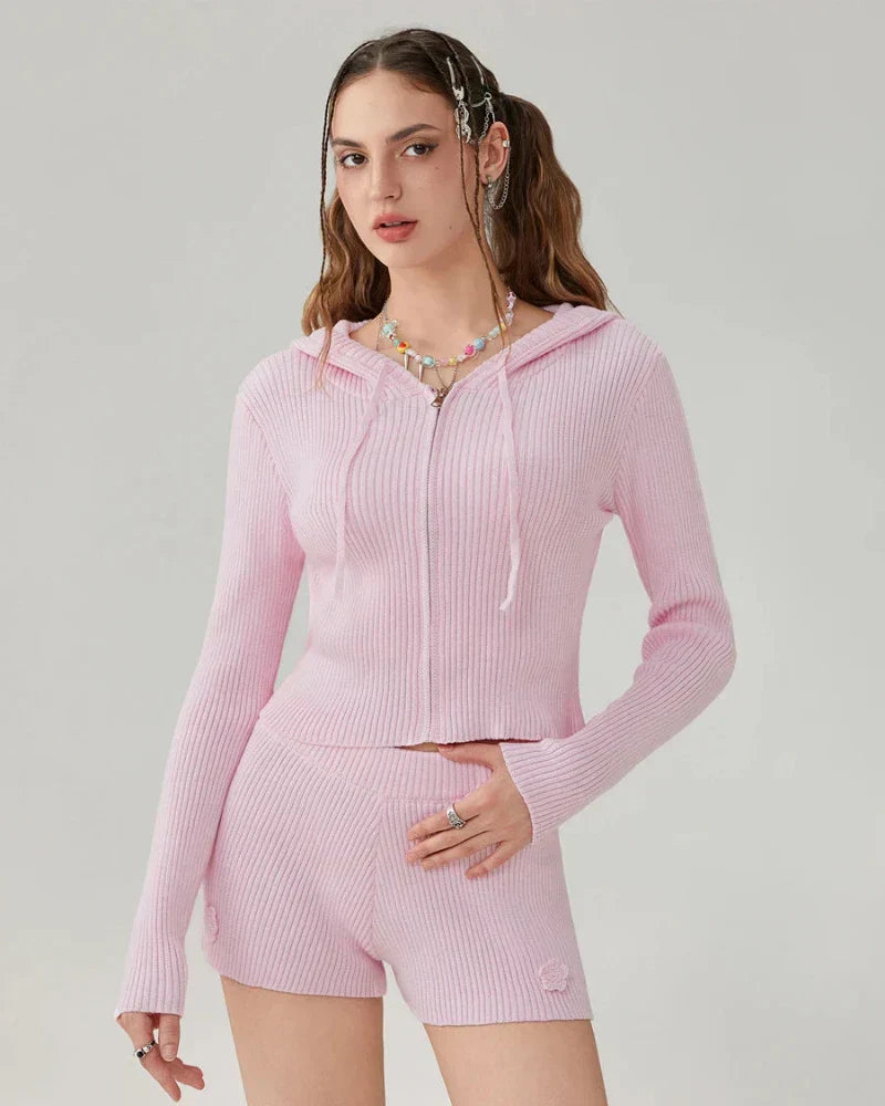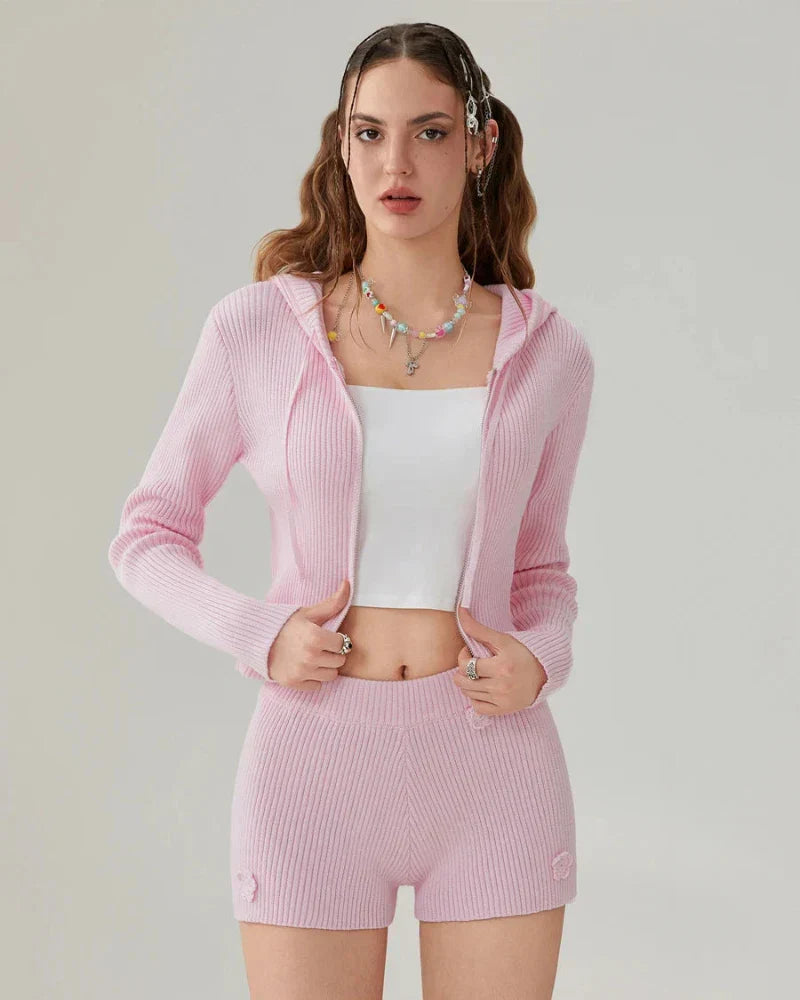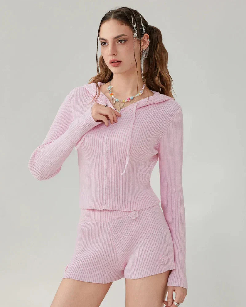 Doplňte svůj šatník barevnými detaily a buďte každý den výjimeční. Objednejte si hned teď a užijte si pohodlí a styl této krátké pletené domácí soupravy s kapucí!