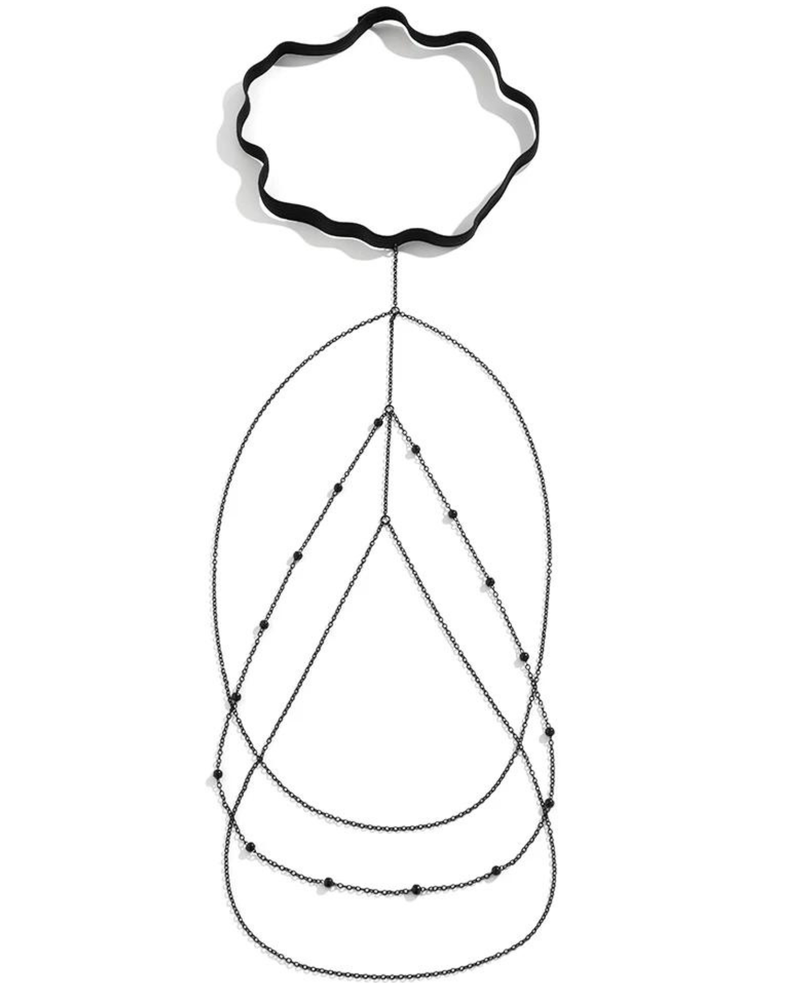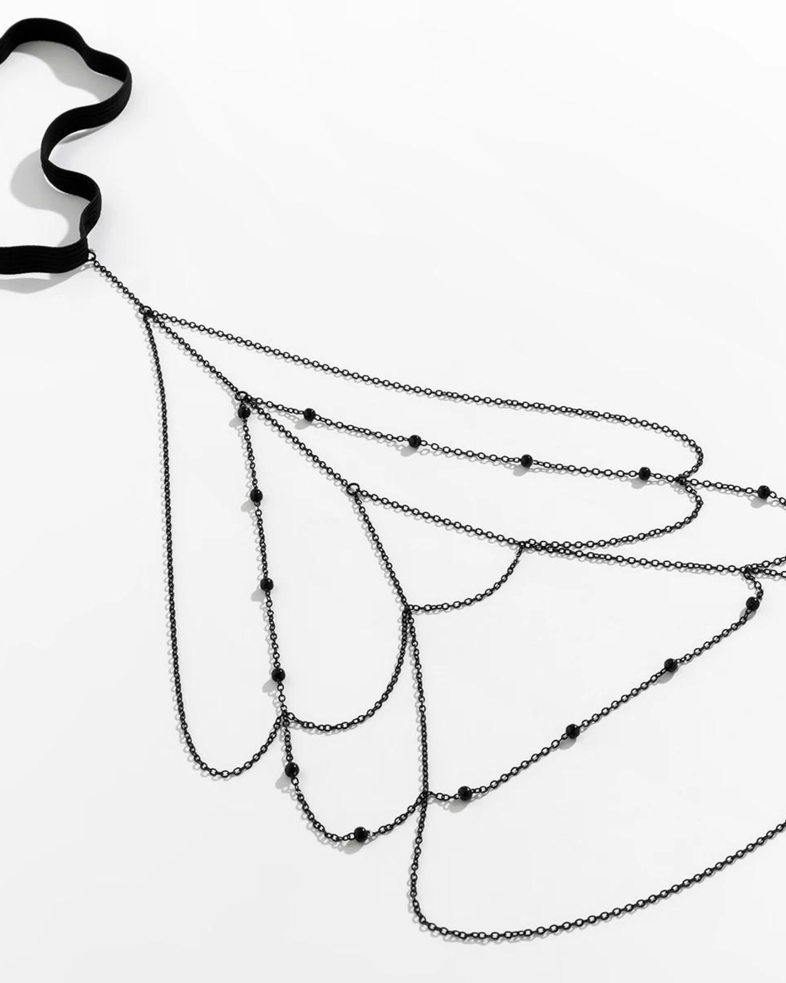 Tento řetízek v sobě spojuje eleganci s nádechem smyslnosti. Jeho jemný černý materiál decentně splývá s vašimi stehny a dodává mu nádech tajemství a svůdnosti. Elastický pásek zajišťuje pohodlí a dokonale se přizpůsobí tvaru vašeho těla. Tento šperk zdůrazní vaši individualitu a posílí vaše sebevědomí.