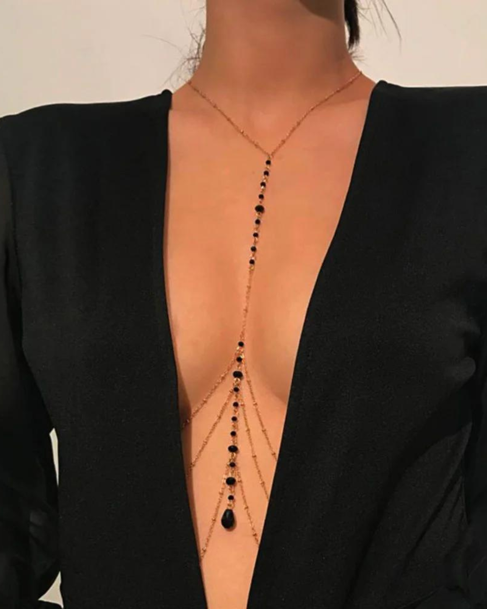 Přeneste se do světa elegance a jemnosti s tímto jedinečným řetízkem, vytvořeným pro ženy, které chtějí zdůraznit svou smyslnost. Jemné zlaté očka v kombinaci s černými korálky vytvářejí efekt, který dokonale zvýrazňuje krk a dekolt a dodává outfitu jedinečný charakter. Tento doplněk se perfektně hodí k večerním róbám i každodenním outfitům a dodává mu nádech sofistikovanosti a ženského šarmu.