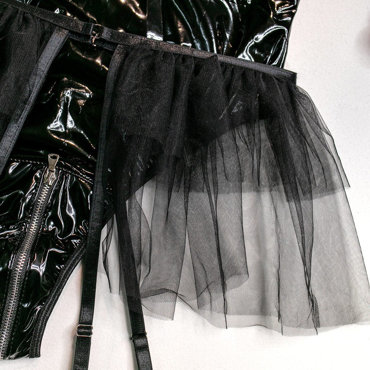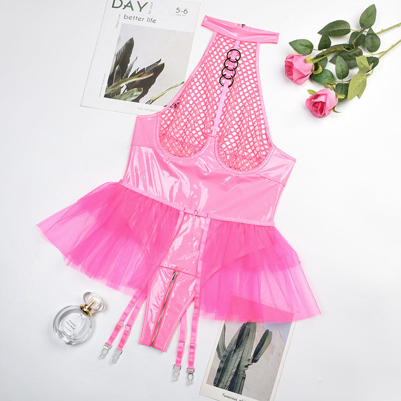 Toto body s podvazkovým pásem bylo navrženo pro ženy, které chtějí vyzařovat sebevědomí a sexepil. Jedinečné detaily, jako jsou odhalená záda a průsvitný výstřih, udělají nezapomenutelný dojem v jakémkoli prostředí.